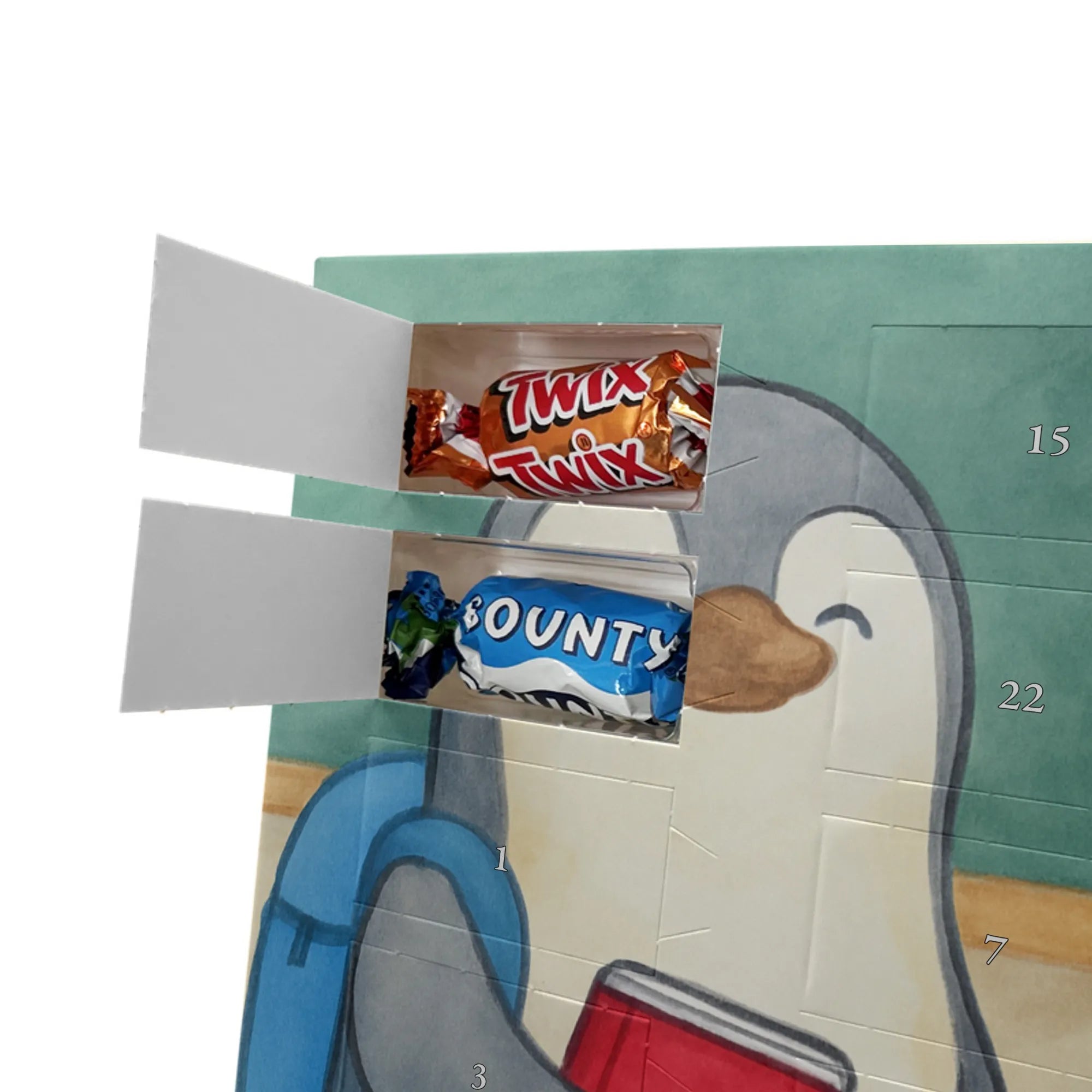 🐼 Schoko-Adventskalender: Liebevolles Design, seidenmatt, brillanter Druck – ein Hingucker.