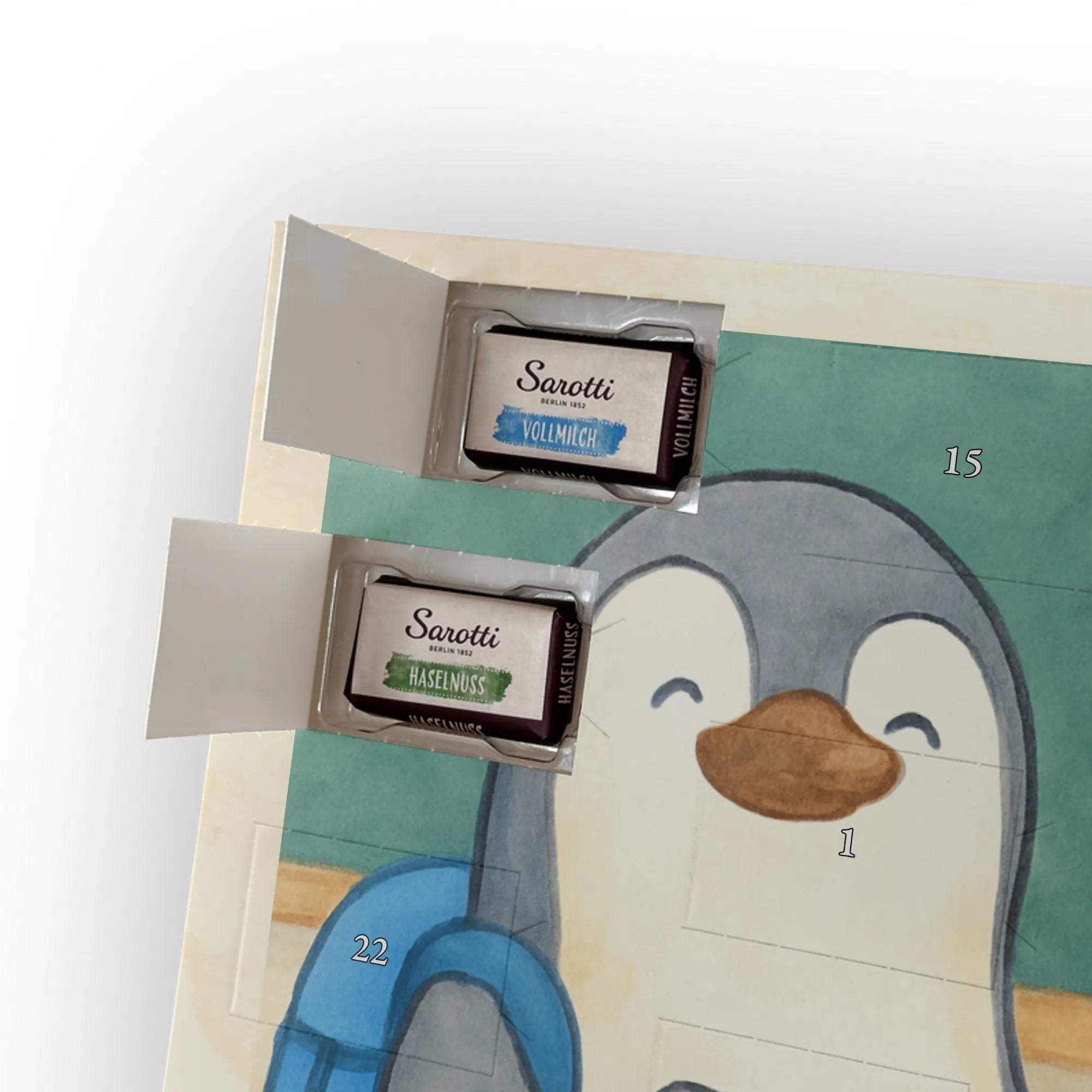 🐼 Adventskalender mit Schokolade, liebevoll bedruckt, seidenmatt veredelt.