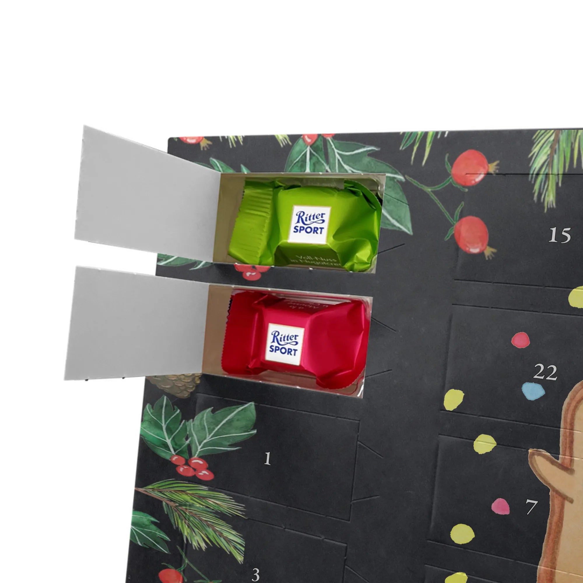 Adventskalender Schokolade von Mr. & Mrs. Panda – eine liebevolle Kombination aus hübschem Design und süßem Inhalt. Der Kalender ist bedruckt mit wunderschönen Motiven & Sprüchen von Mr. & Mrs. Panda und besticht durch brillante Druckqualität mit seidenmatter Oberflächenveredelung. Die Seitenflächen sind ebenfalls bedruckt, wodurch der Kalender rundum ein Hingucker ist. Er ist nicht personalisierbar. Maße: 325 mm x 225 mm x 27 mm. Besonders praktisch: Du kannst ihn sowohl aufgehängt als auch aufgestellt nutzen, je nachdem, wo er bei dir am schönsten wirkt. Gefüllt ist der Kalender mit Ritter Sport Schokowürfeln in verführerischen Sorten – Mousse au Chocolat, Schoko Crisp, Voll-Nuss in Nougatcreme, Karamell Duo, Joghurt und Erdbeer-Joghurt. Wichtiger Hinweis: Es handelt sich um einen Kalender gefüllt mit Ritter Sport Schokolade, nicht um einen Kalender der Marke Ritter Sport. Schenke deinen Liebsten oder dir selbst tägliche Schokoglücksmomente mit diesem charmanten Adventskalender.