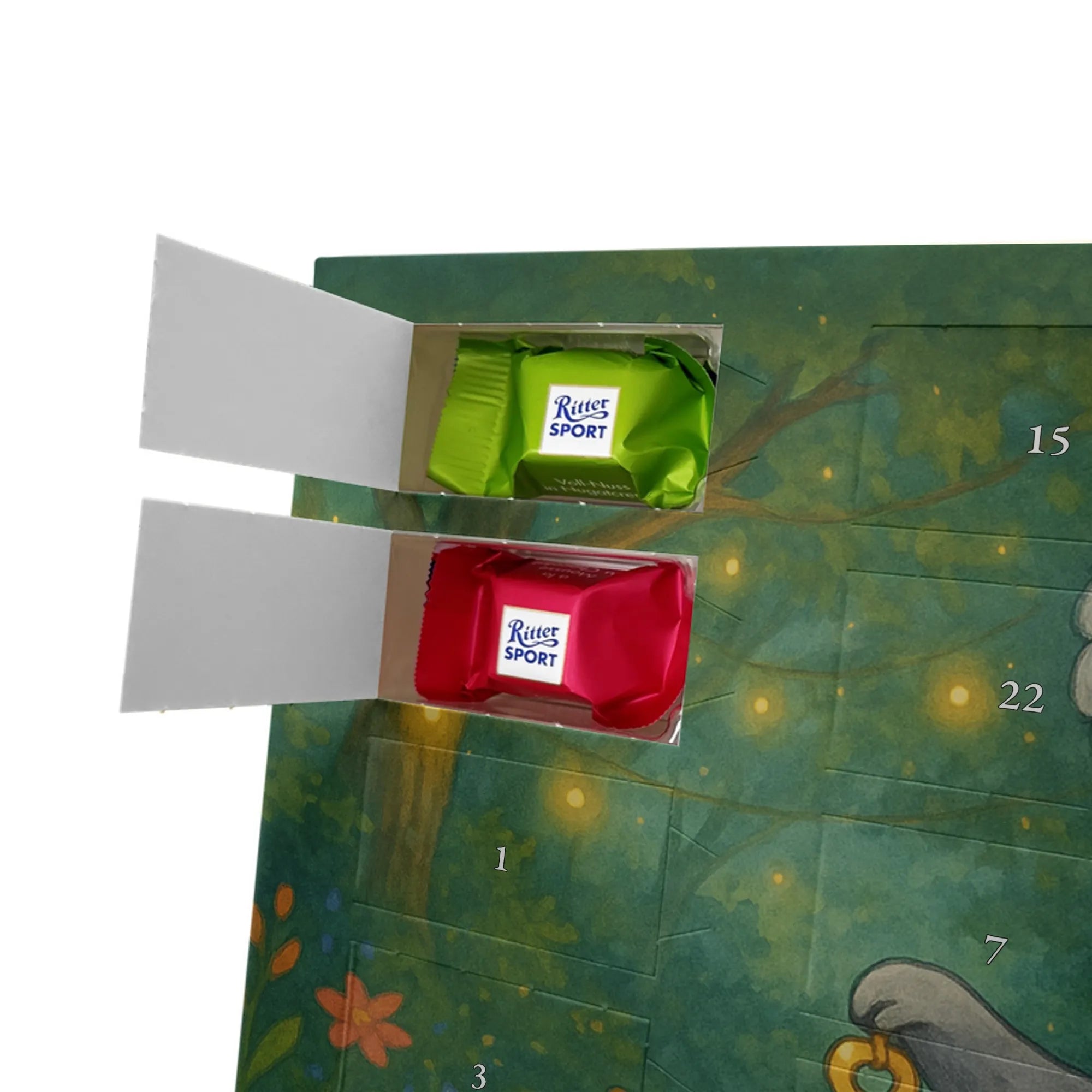 🐼 24 Türchen gefüllt mit Ritter Sport Schokowürfeln – perfekte Adventsüberraschungen.