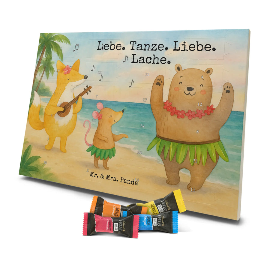 Unser entzückender Schokoladen Adventskalender von Mr. & Mrs. Panda ist das perfekte Highlight für die Adventszeit. Bedruckt mit wunderschönen Motiven & Sprüchen von Mr. & Mrs. Panda zaubert er dir ein Lächeln an jedem Tag im Dezember. Der Kalender ist nicht personalisierbar, überzeugt aber durch brillante Druckqualität mit seidenmatter Oberflächenveredelung und sorgsame bedruckte Seitenflächen. Die stabile Verarbeitung macht ihn zu einem dekorativen Hingucker. Maße: 325 mm x 225 mm x 27 mm. Besonders praktisch: Er kann aufgehängt oder aufgestellt werden, ganz nach deinem Geschmack und Platzangebot. Gefüllt ist der Adventskalender mit Ritter Sport Schokowürfeln – in verführerischen Sorten wie Mousse au Chocolat, Schoko Crisp, Voll-Nuss in Nougatcreme, Karamell Duo, Joghurt und Erdbeer-Joghurt. Wichtiger Hinweis: Es handelt sich um einen Kalender gefüllt mit Ritter Sport Schokolade, nicht um einen Kalender der Marke Ritter Sport. Schenk ihn Freunden, der Familie oder gönn dir selbst eine süße Vorfreude: kleine Schokoladenmomente, liebevoll verpackt von Mr. & Mrs. Panda.