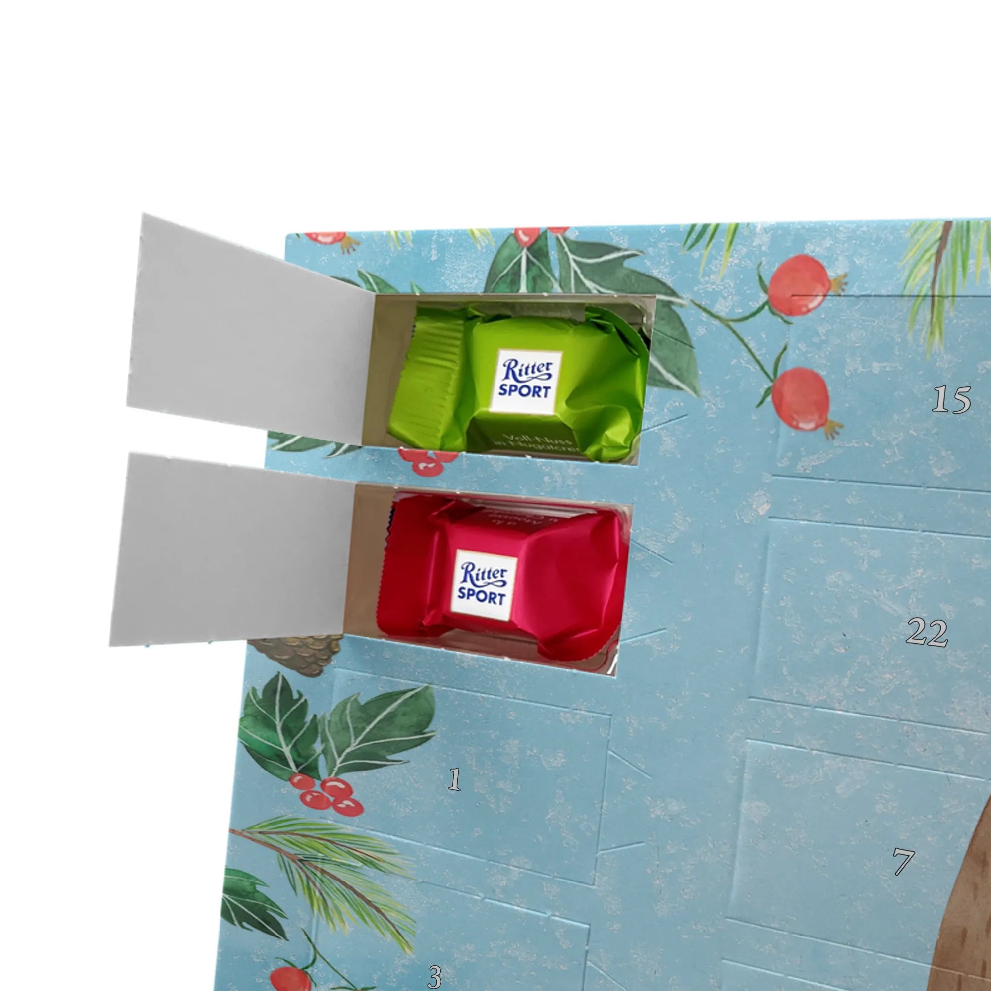 🐼 24 Türchen gefüllt mit Ritter Sport Schokowürfeln – perfekte Adventsüberraschungen.