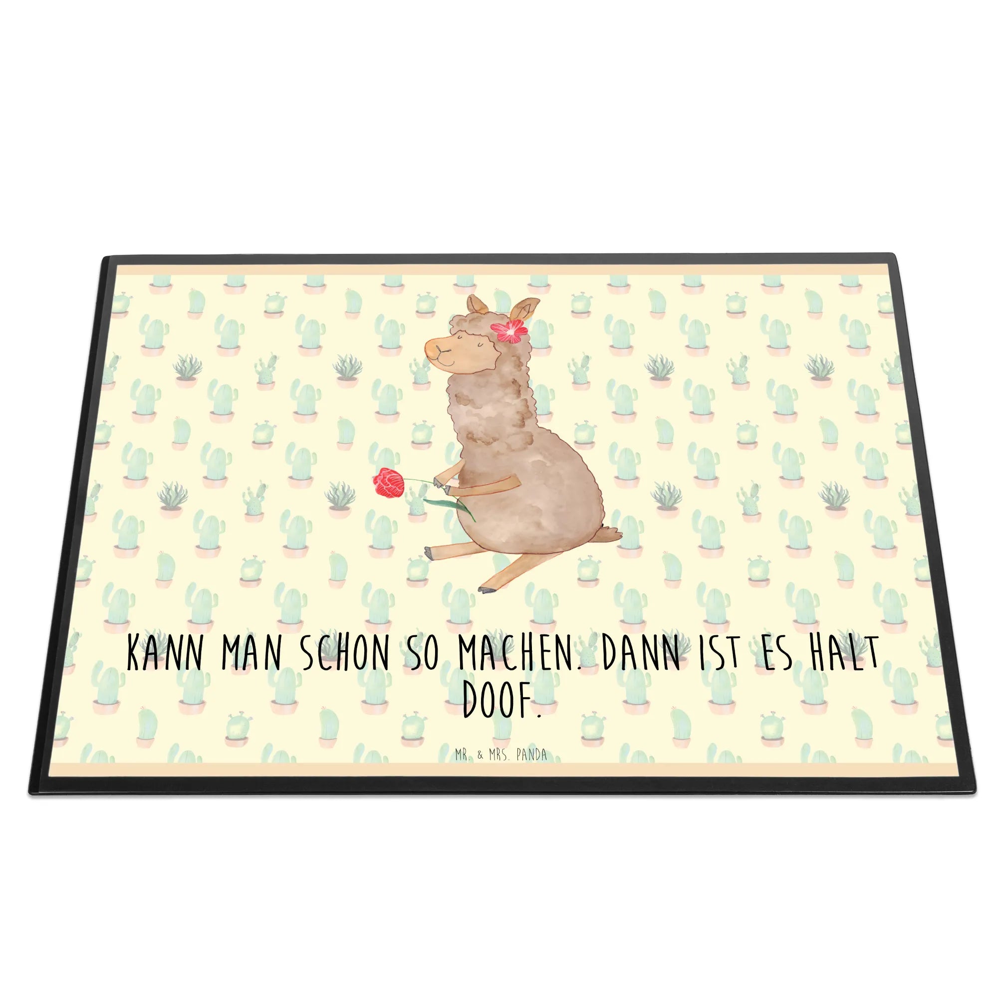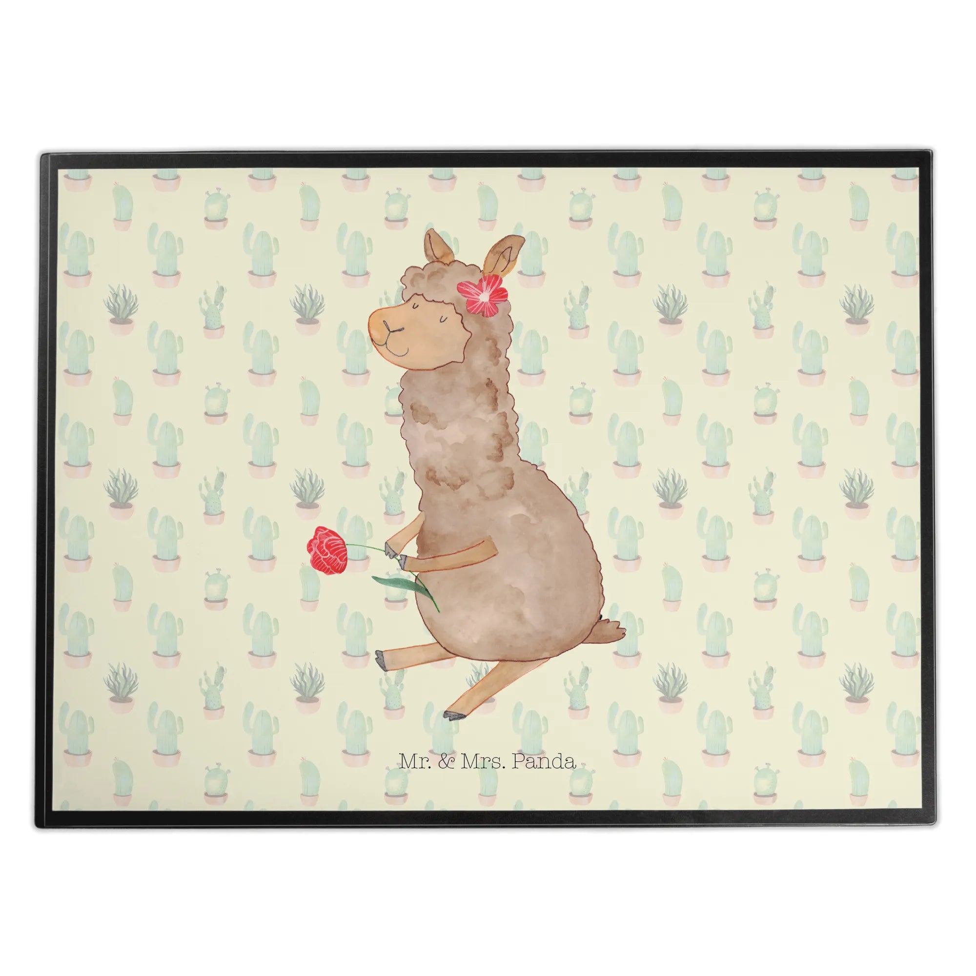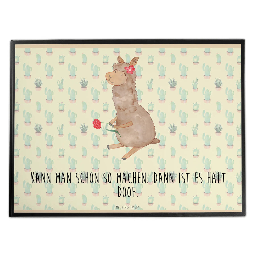 Schreibtischunterlage Alpaka Blume - mit Spruch - Kaktus Grün