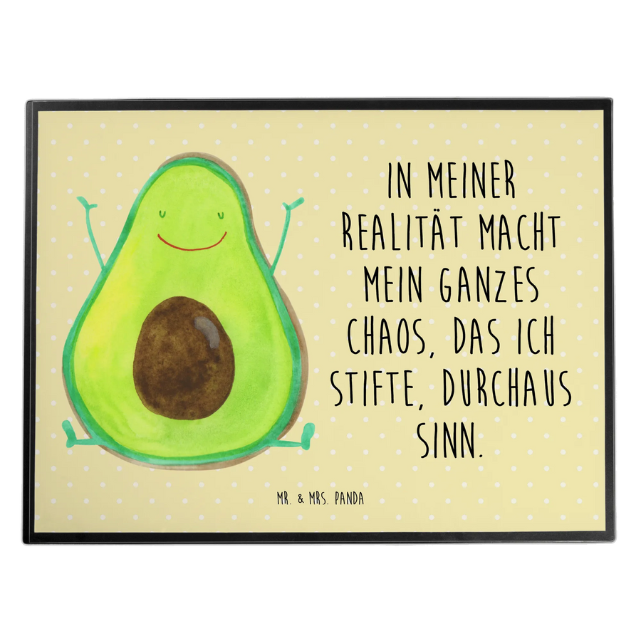 Entdecke die zauberhafte Schreibtischunterlage "Avocado Happy" von Mr. & Mrs. Panda! Diese einzigartige Schreibtischauflage ist nicht nur ein echter Blickfang mit ihrem fröhlichen Avocado-Motiv, sie bringt auch eine angenehm positive Atmosphäre an deinen Arbeitsplatz oder Schreibtisch. Der Slogan "In meiner Realität macht mein ganzes Chaos, das ich stifte, durchaus Sinn" spricht jedem von uns aus der Seele, der beim Arbeiten auch mal ein bisschen durcheinander kommt. Mit ihrer Größe von 400 mm x 530 mm bietet die Unterlage ausreichend Platz für all deine Schreibarbeiten, egal ob im Büro, in der Schule oder im gemütlichen Homeoffice.