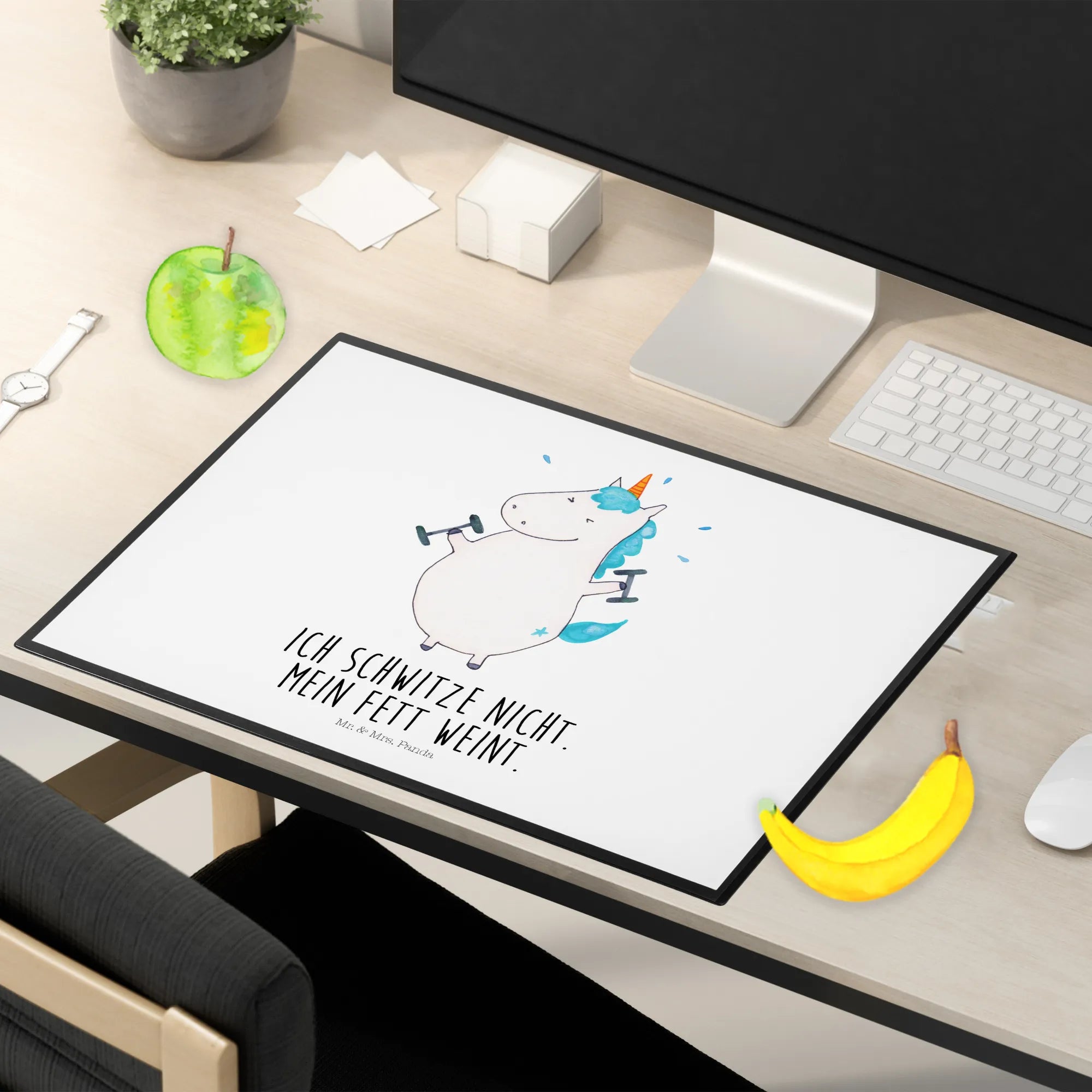 Schreibtischunterlage Einhorn Fitness - ohne Spruch - Weiß