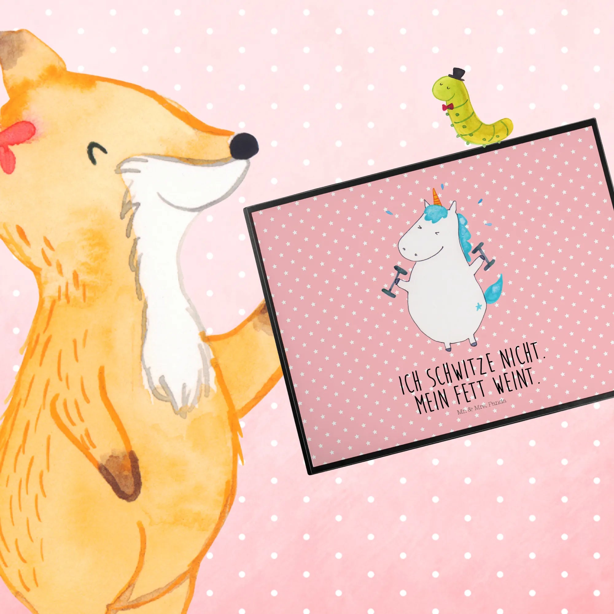 Bring gute Laune an deinen Arbeitsplatz mit unserer Schreibtischunterlage „Einhorn Fitness“ aus der Einhorn - Kollektion von Mr. & Mrs. Panda. Ein süßes Einhorn stemmt Hanteln, spritzt frech und begleitet dich mit dem Spruch „Ich schwitze nicht. Mein Fett weint.“. Das Motiv passt perfekt in Homeoffice, Büro, Studium oder Kinderzimmer und ist ein echter Eyecatcher unter den Büroartikeln.