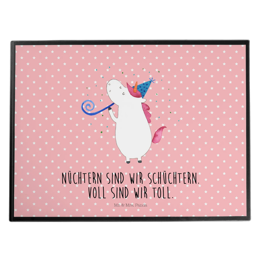 Schreibtischunterlage Einhorn Party - mit Spruch - Rot Pastell