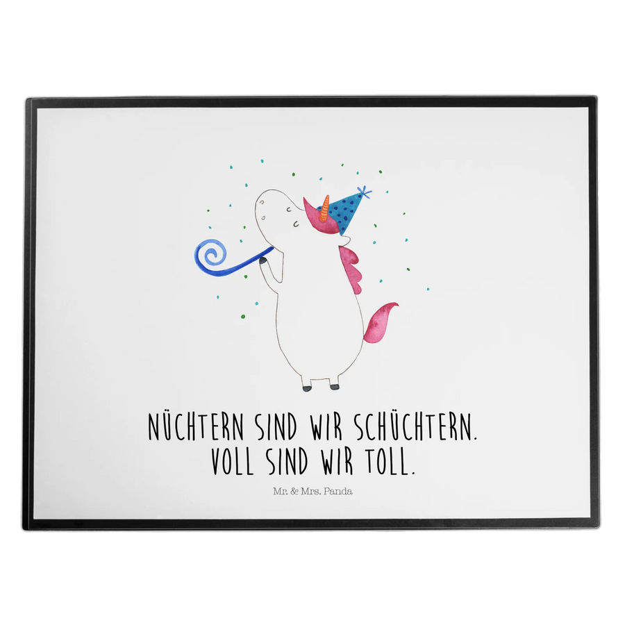 Schreibtischunterlage Einhorn Party - mit Spruch - Weiß