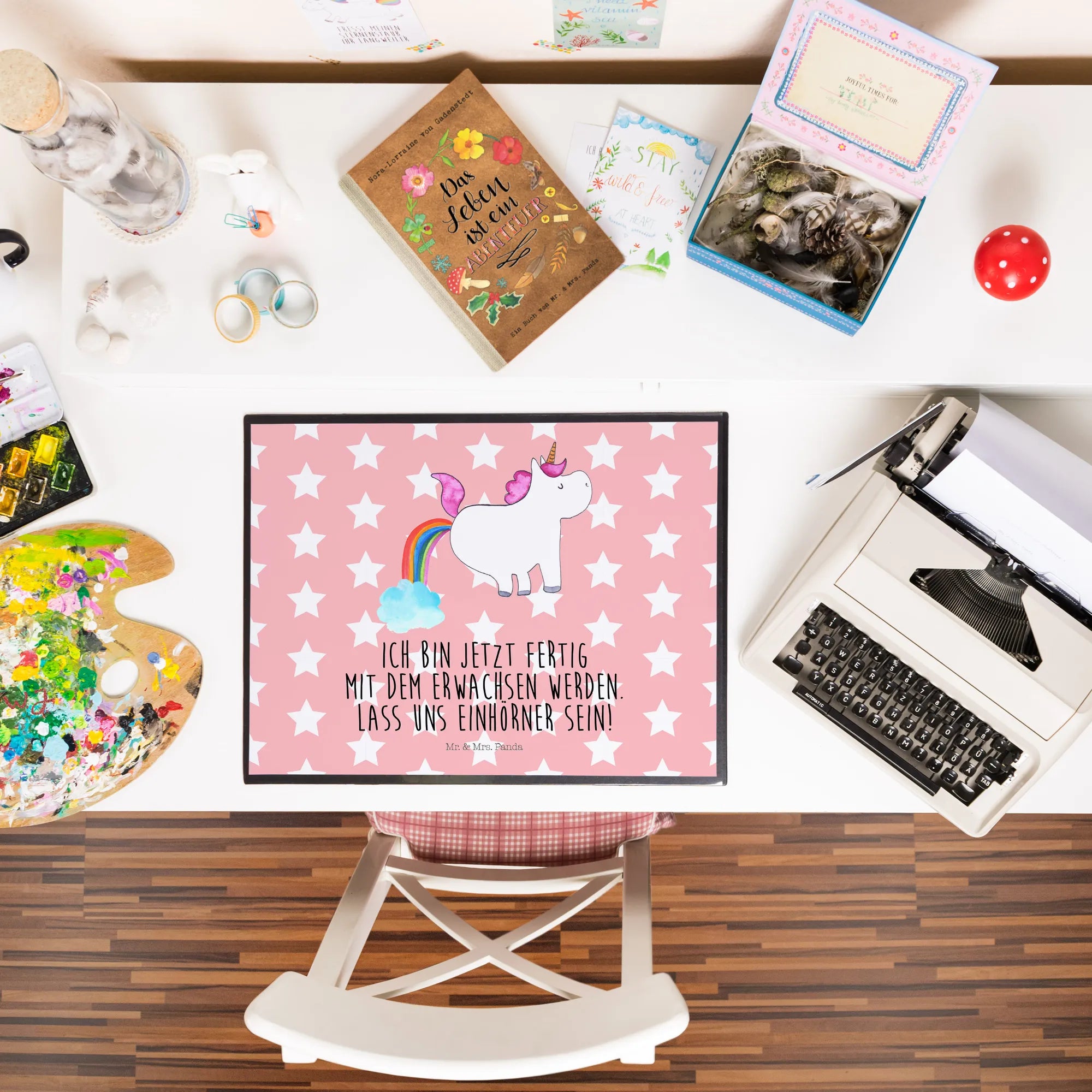 Schreibtischunterlage Einhorn Pupsen - mit Spruch - Rot Pastell