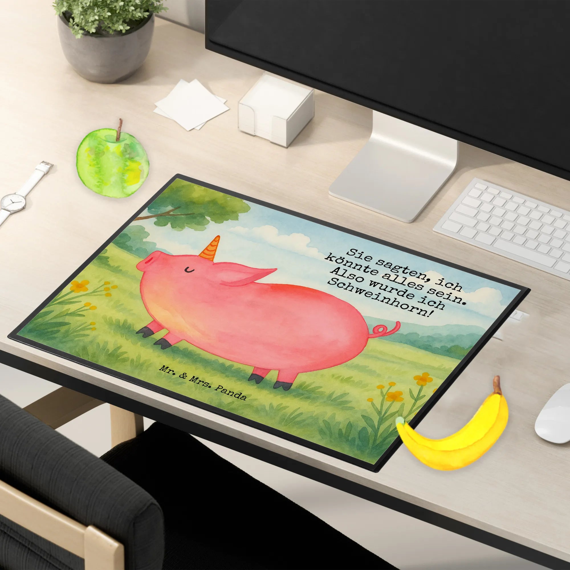 Die Schreibtischunterlage von Mr. & Mrs. Panda wird dein Arbeitsplatz neu gestalten! Sie misst 400 mm x 530 mm und besteht aus erstklassigem Zellkautschuk, der in Deutschland hergestellt wird. Sie ist mit fröhlichen Sprüchen und charmanten Mustern bedruckt, die gute Laune bei der Arbeit bringen. Diese matte Auflage schützt deinen Schreibtisch nicht nur vor Kratzern und Flüssigkeiten, sondern sorgt auch für ein angenehmes Schreibgefühl. Ob im Homeoffice, im Klassenzimmer oder im Büro – sie ist extrem vielseitig einsetzbar. Ein echtes Highlight ist die Einlegelasche, mit der du das Motiv schnell und unkompliziert wechseln kannst! Sie ist widerstandsfähig und rutschfest, was sie zu einem perfekten Begleiter für den Alltag macht. Die Reinigung? Ganz einfach, sie kann ohne Probleme mit einem feuchten Tuch abgewischt werden! Hol dir diese praktische und schöne Schreibtischunterlage nach Hause!
