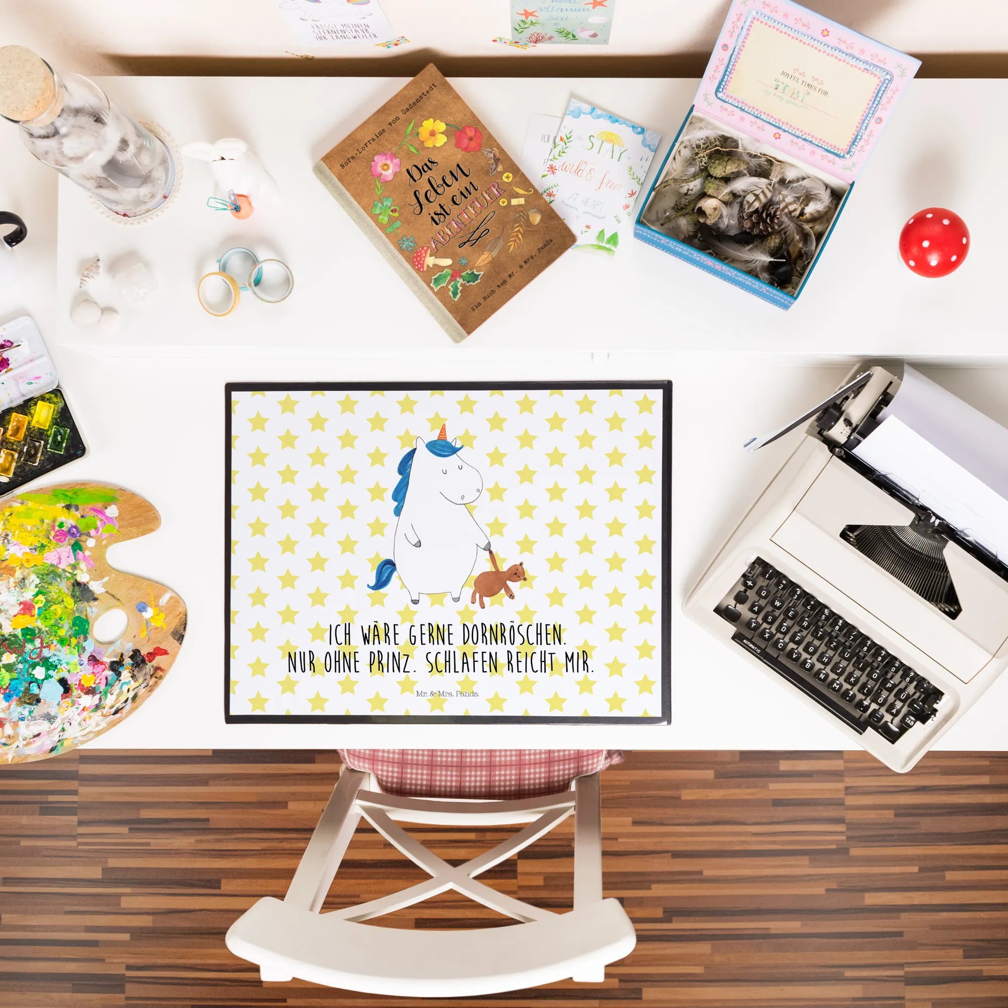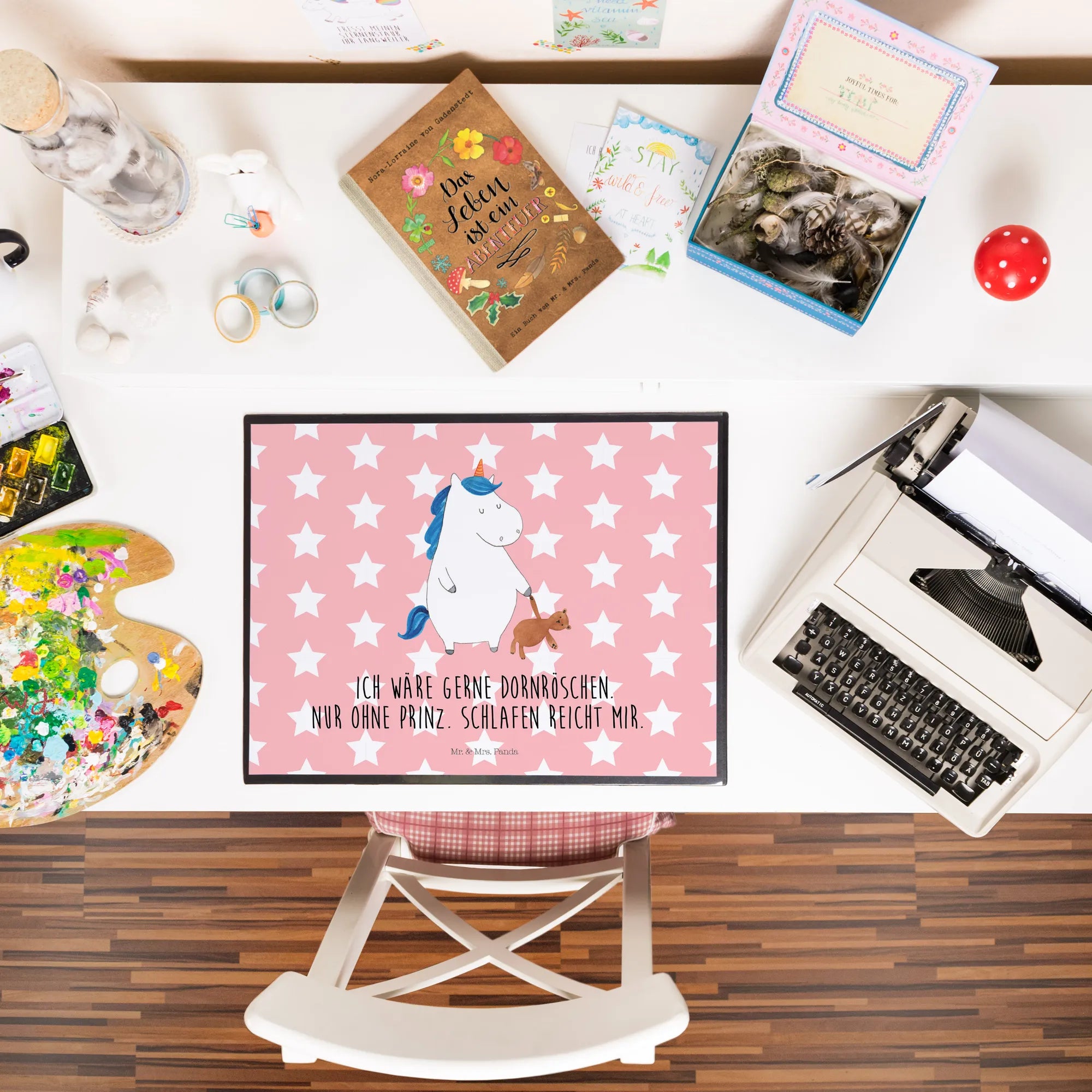 Entdecke die bezaubernde Schreibtischunterlage Einhorn Teddy aus der einzigartigen Einhorn Kollektion von Mr. & Mrs. Panda! Diese liebevoll gestaltete Schreibtischauflage mit einem schlafenden Einhorn und einem Teddybären ist der perfekte Begleiter für alle Einhorn-Fans und die, die es werden wollen.