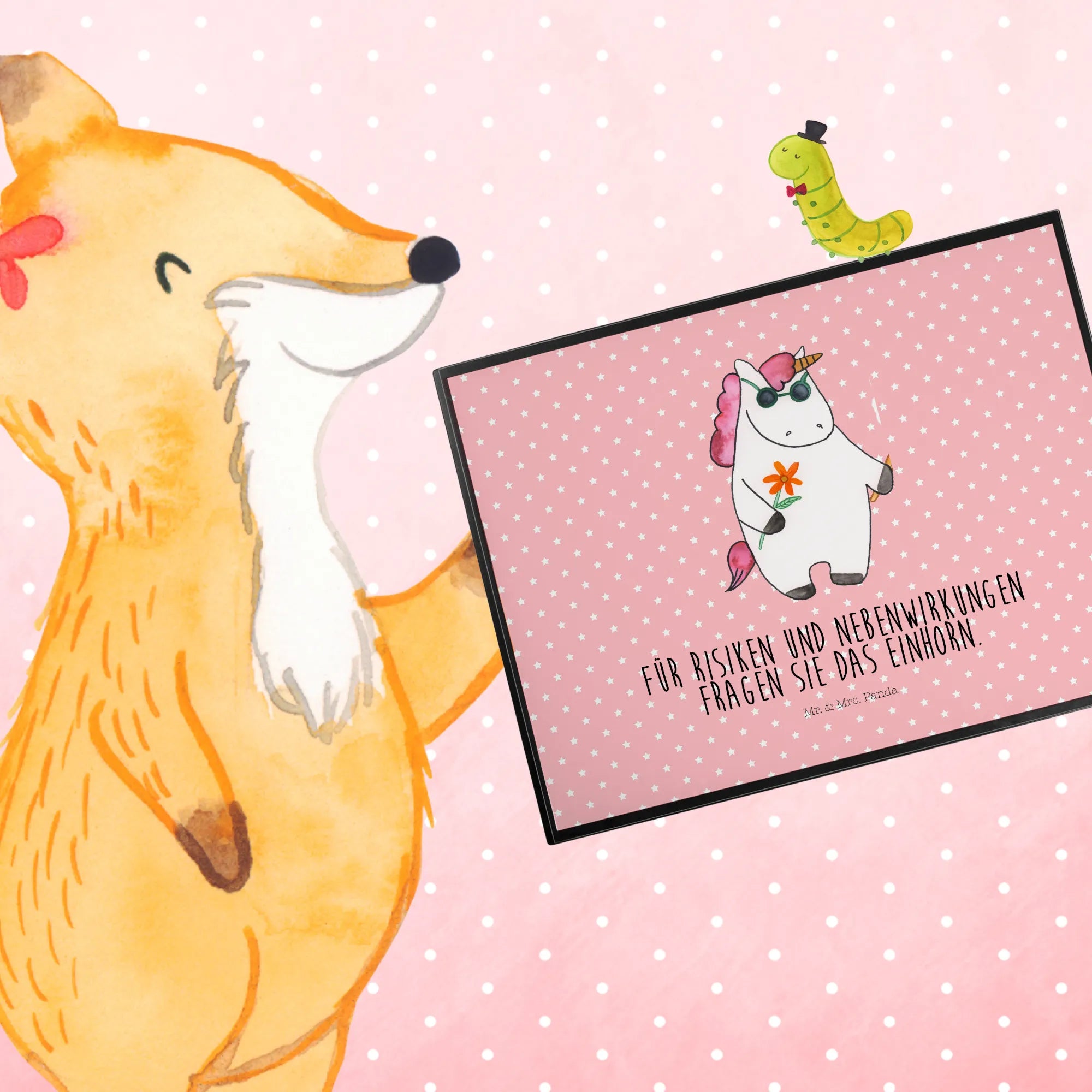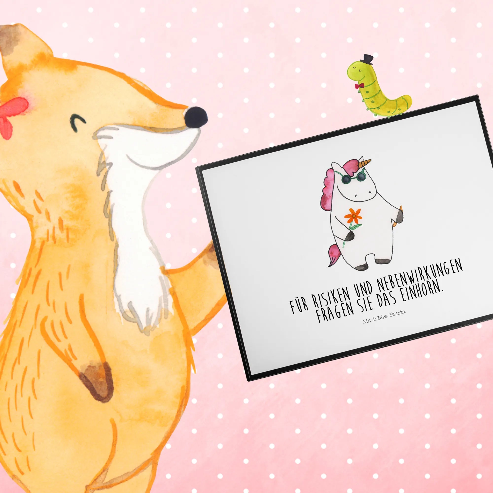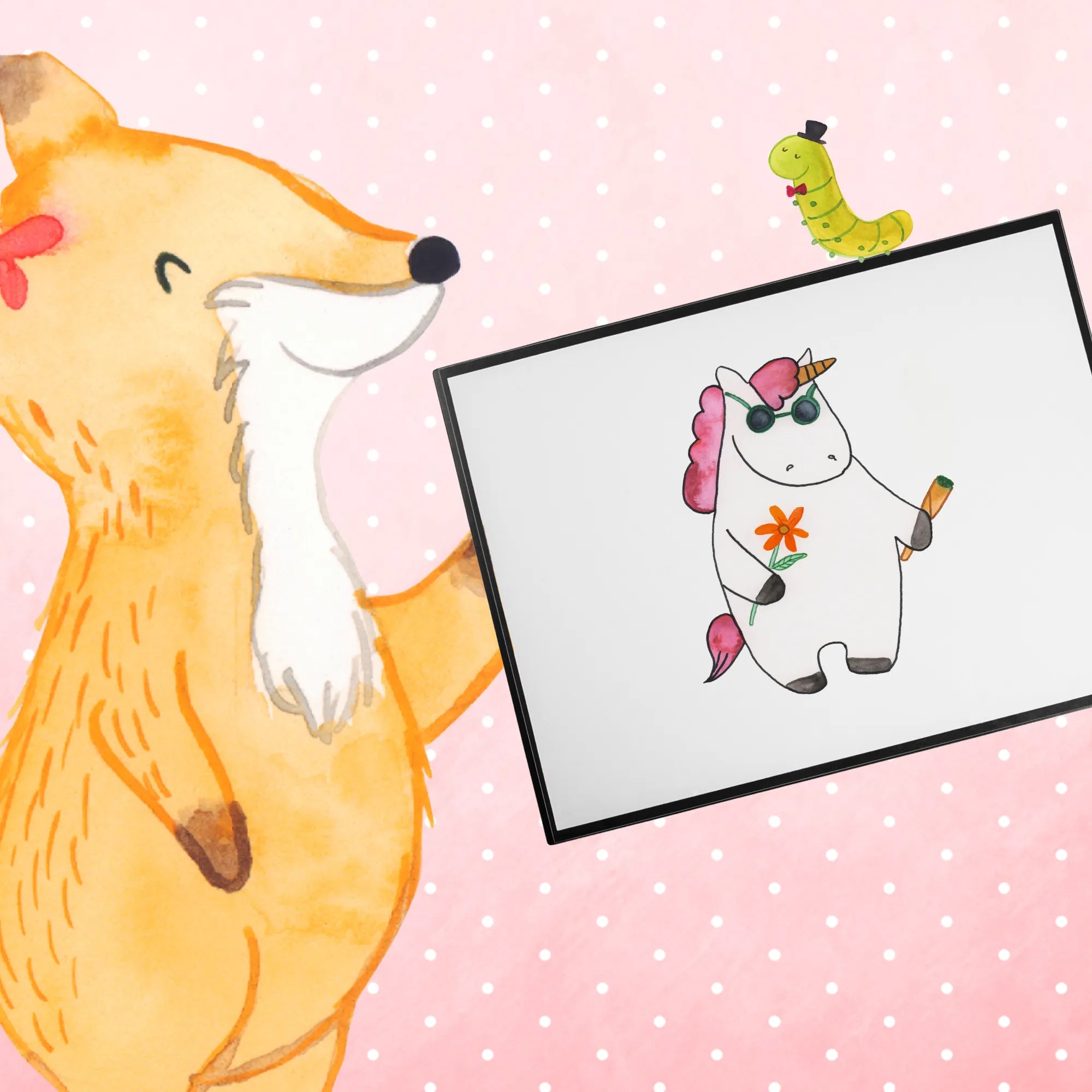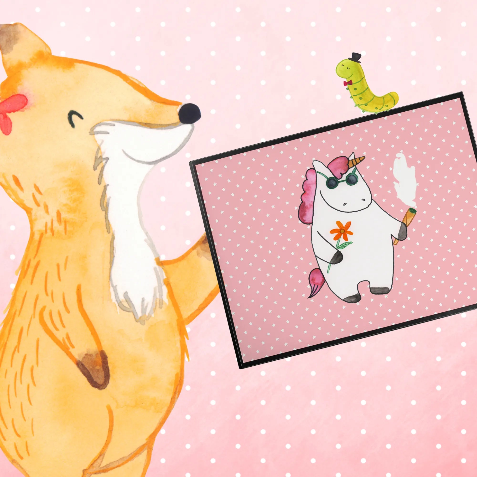 Die Schreibtischunterlage Einhorn Woodstock von Mr. & Mrs. Panda ist das perfekte Geschenk für alle Einhornliebhaber und Partyfreunde! Diese kreative Schreibtischauflage mit dem einzigartigen Motiv eines coolen Einhorns, das einen Joint in der Hand hält und Sonnenbrille trägt, bringt das Woodstock-Feeling direkt auf deinen Schreibtisch. Ob für das Büro, die Schule oder dein kreatives Zuhause – mit einer Größe von 400 mm x 530 mm bietet diese hochwertige Schreibtischunterlage genügend Platz für deine Notizen und sorgt gleichzeitig für ein angenehmes Schreibgefühl.