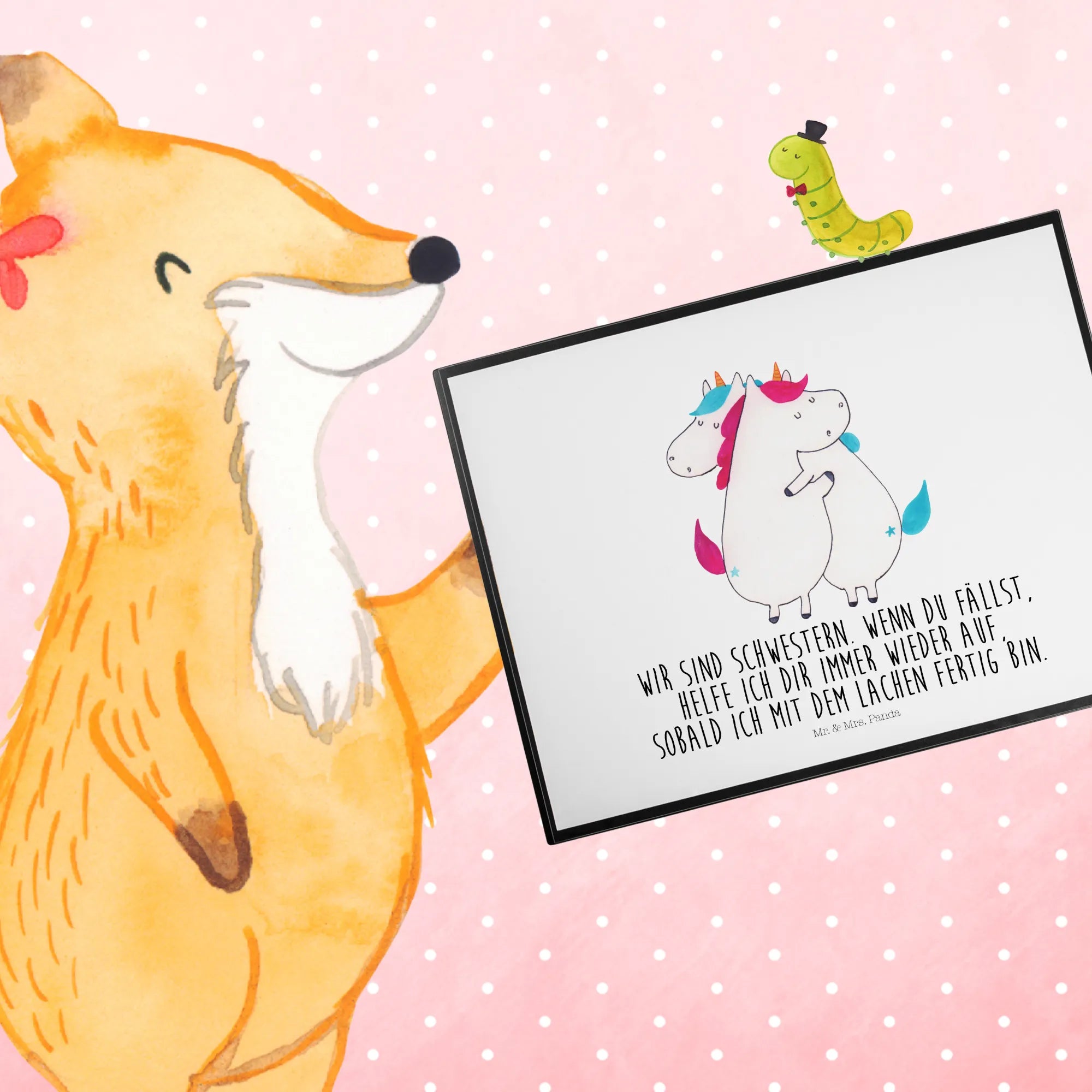 Stell dir vor, zwei niedliche Einhörner halten sich fest umarmt, während sie gleichzeitig deinem Schreibtisch einen ganz besonderen Flair verleihen. Mit dem Spruch „Wir sind Schwestern. Wenn du fällst, helfe ich dir immer wieder auf, sobald ich mit dem Lachen fertig bin“ ist sie nicht nur ein hübsches Accessoire, sondern auch eine liebevolle Geste für Geschwister und Freundinnen.