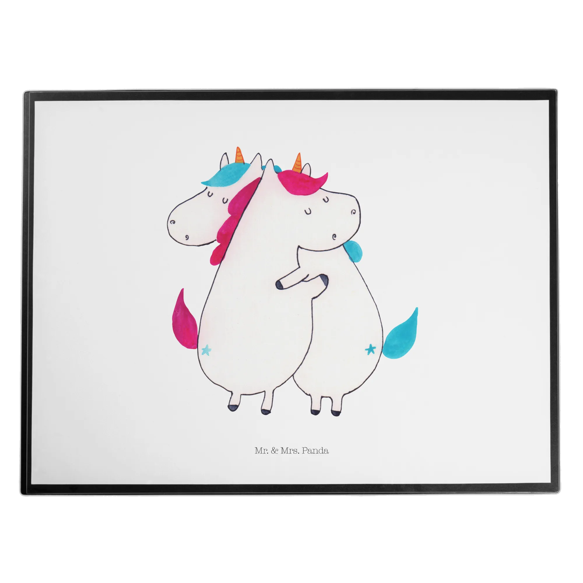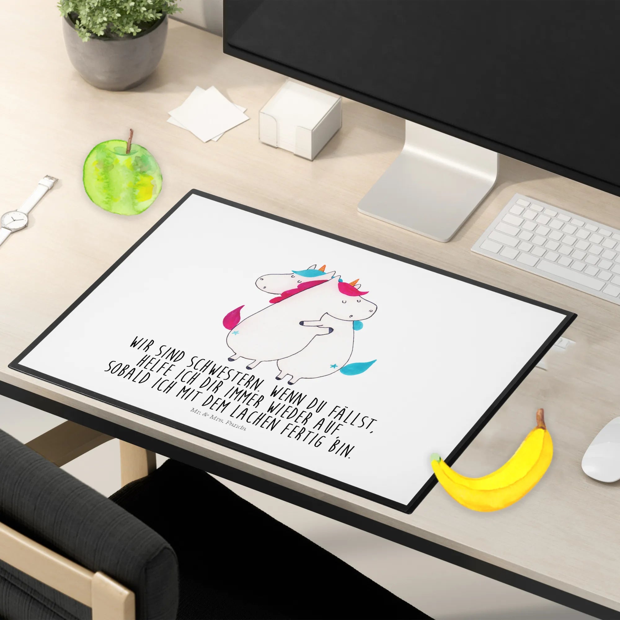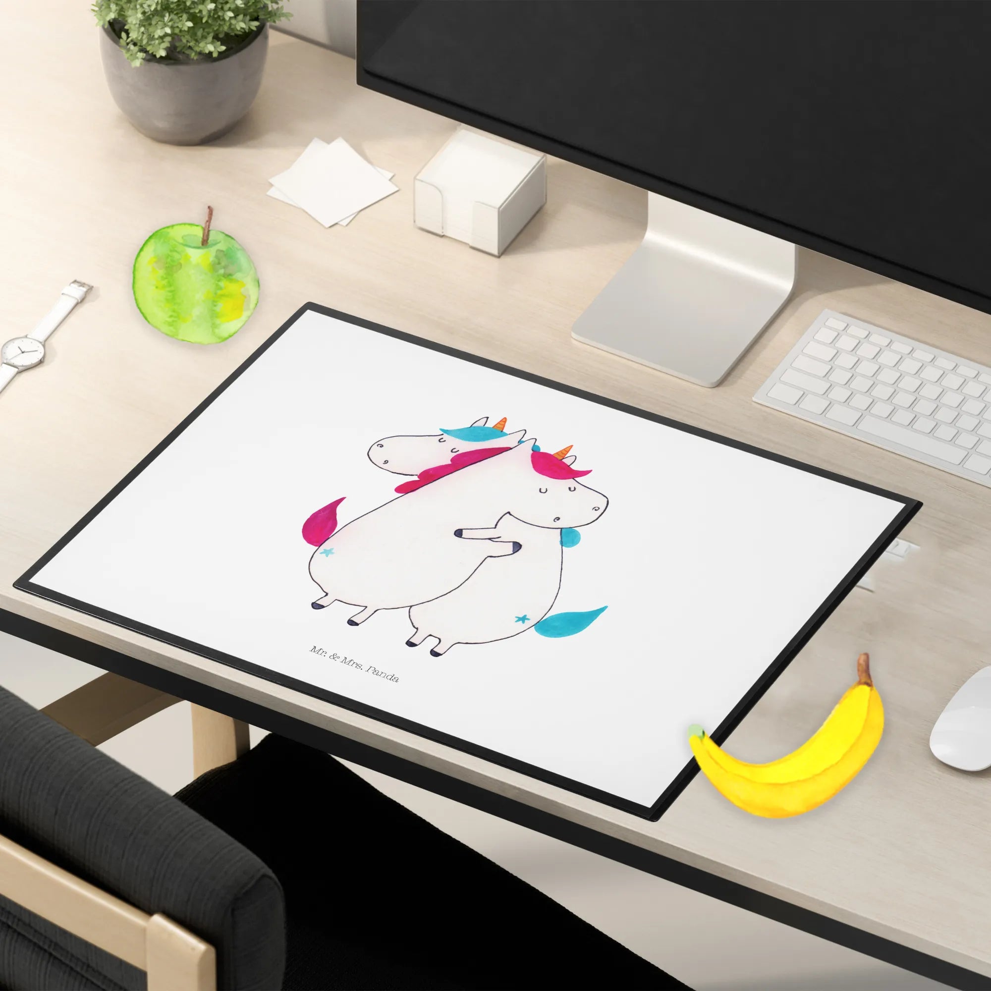 Schreibtischunterlage Einhörner Umarmen - mit Spruch - Weiß