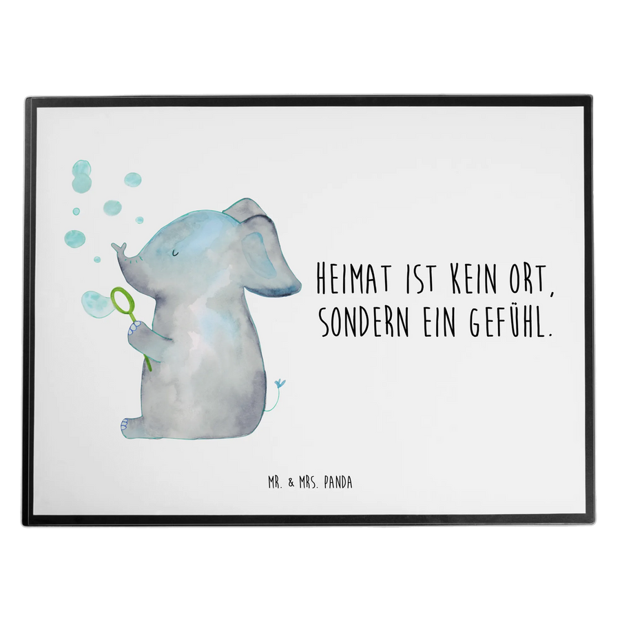 Entdecke die fröhliche Schreibtischauflage von Mr. & Mrs. Panda: Ein niedlicher Elefant pustet bunte Seifenblasen vor einem sanften Gelb Pastell Hintergrund und trägt den liebevollen Spruch „Heimat ist kein Ort, sondern ein Gefühl.“ Diese Schreibtischunterlage verbindet herzerwärmende Optik mit praktischem Nutzen und ist das perfekte Bürozubehör für Zuhause, Schule oder Büro. 😊