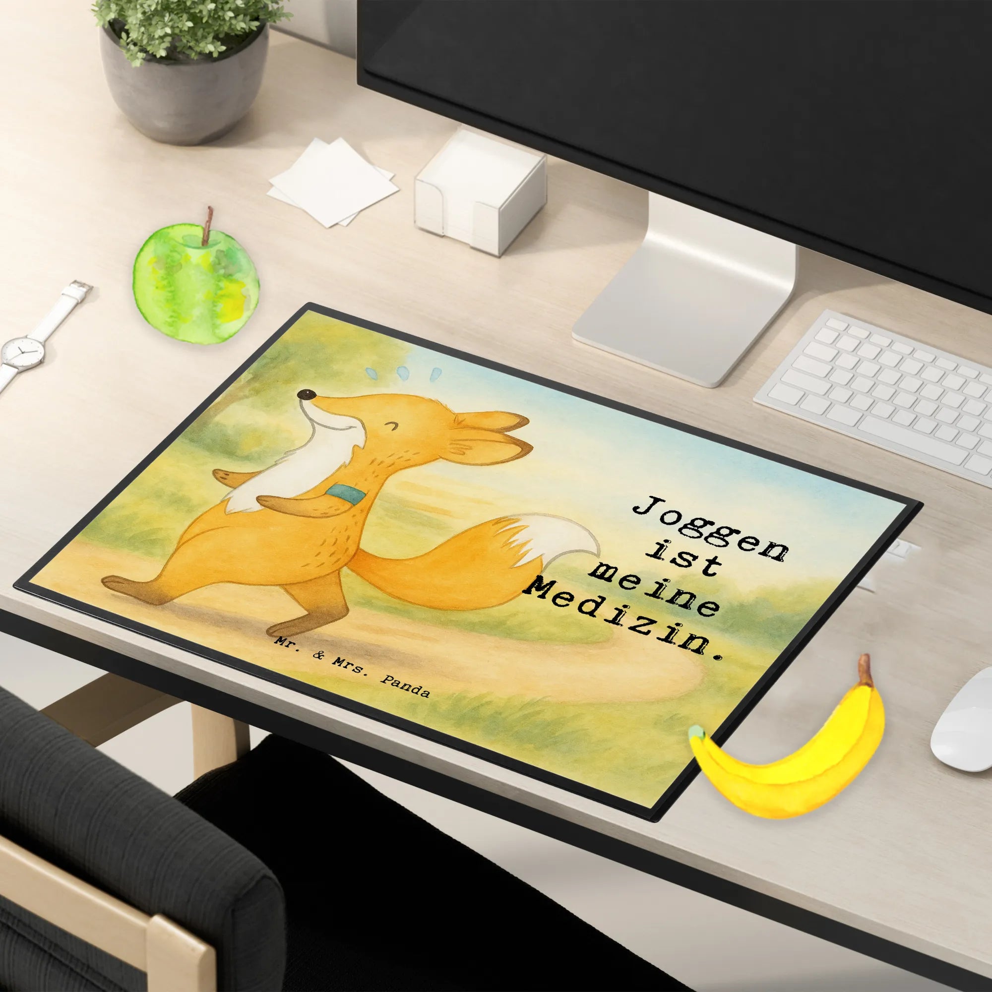 schreibtischunterlage Fuchs Joggen Design - mit Spruch