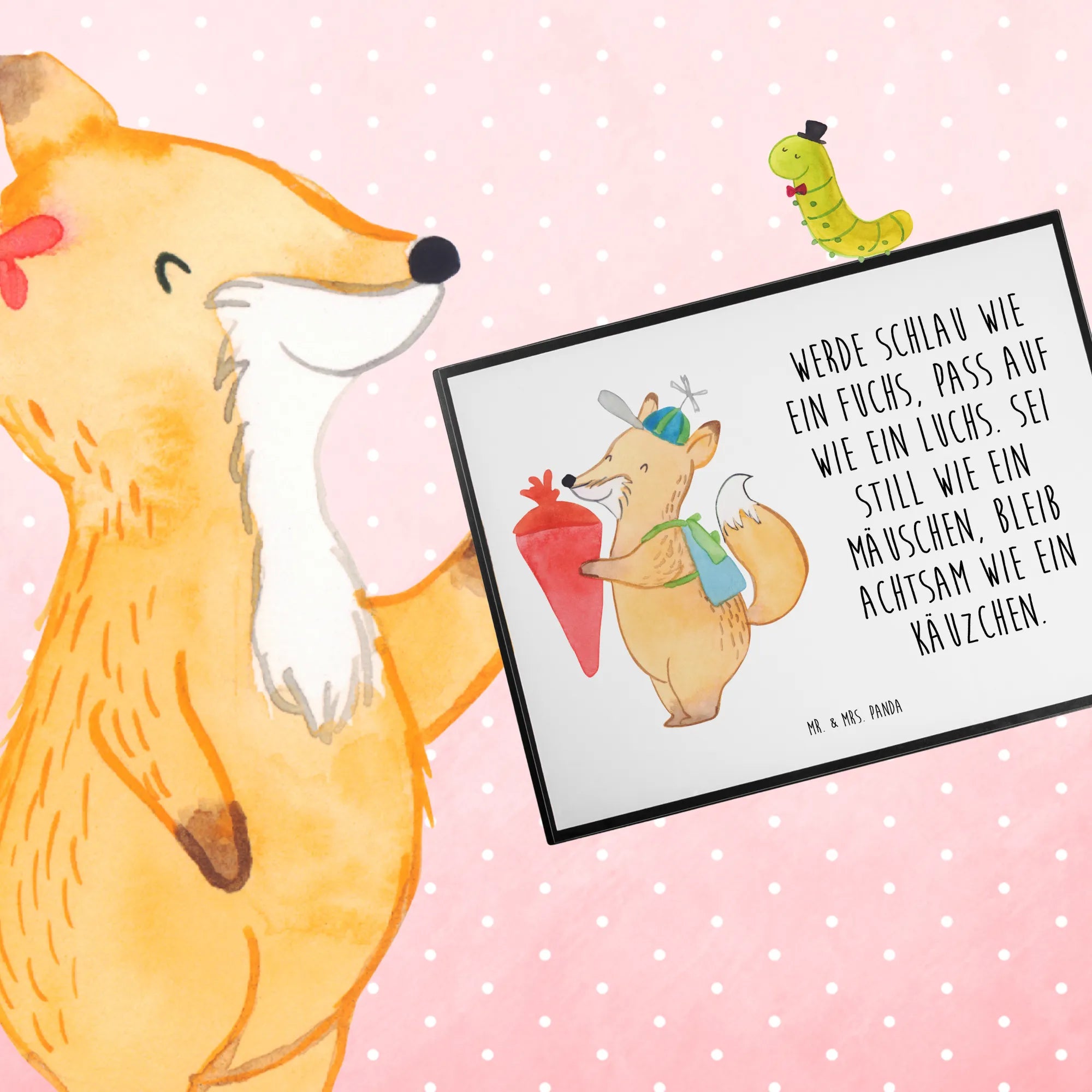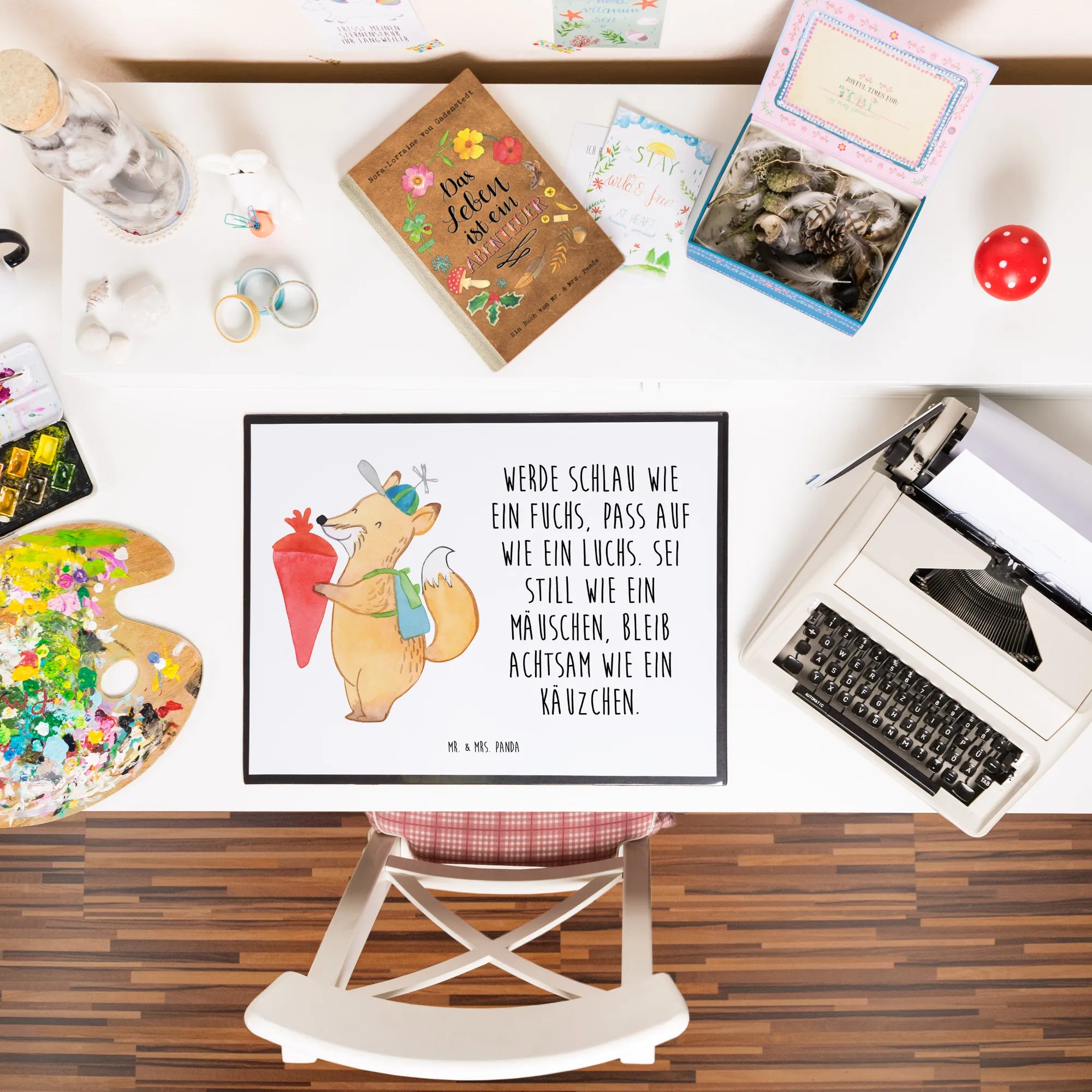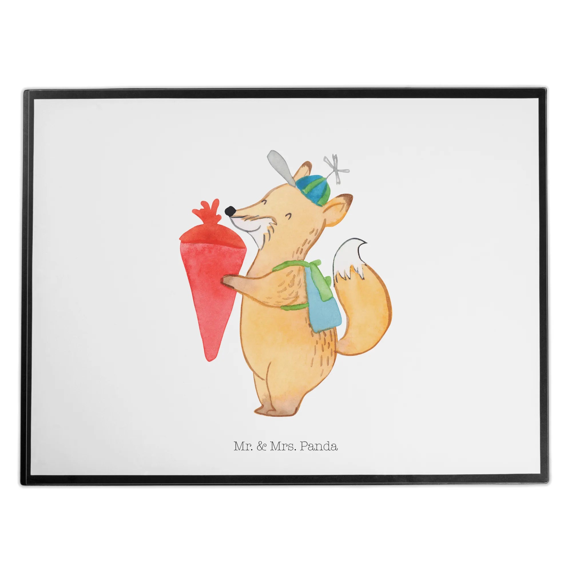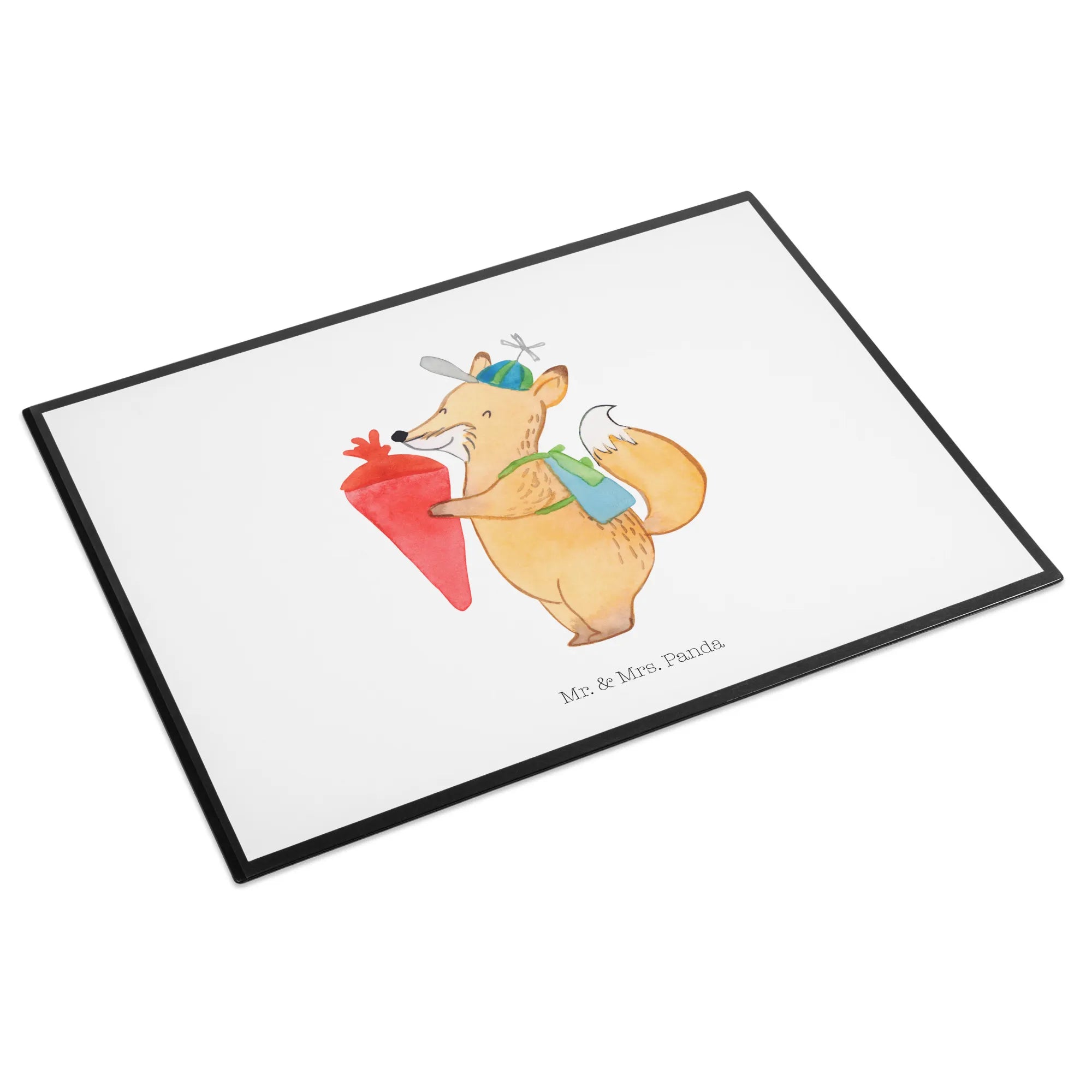 Schreibtischunterlage Fuchs Schulkind - mit Spruch - Weiß