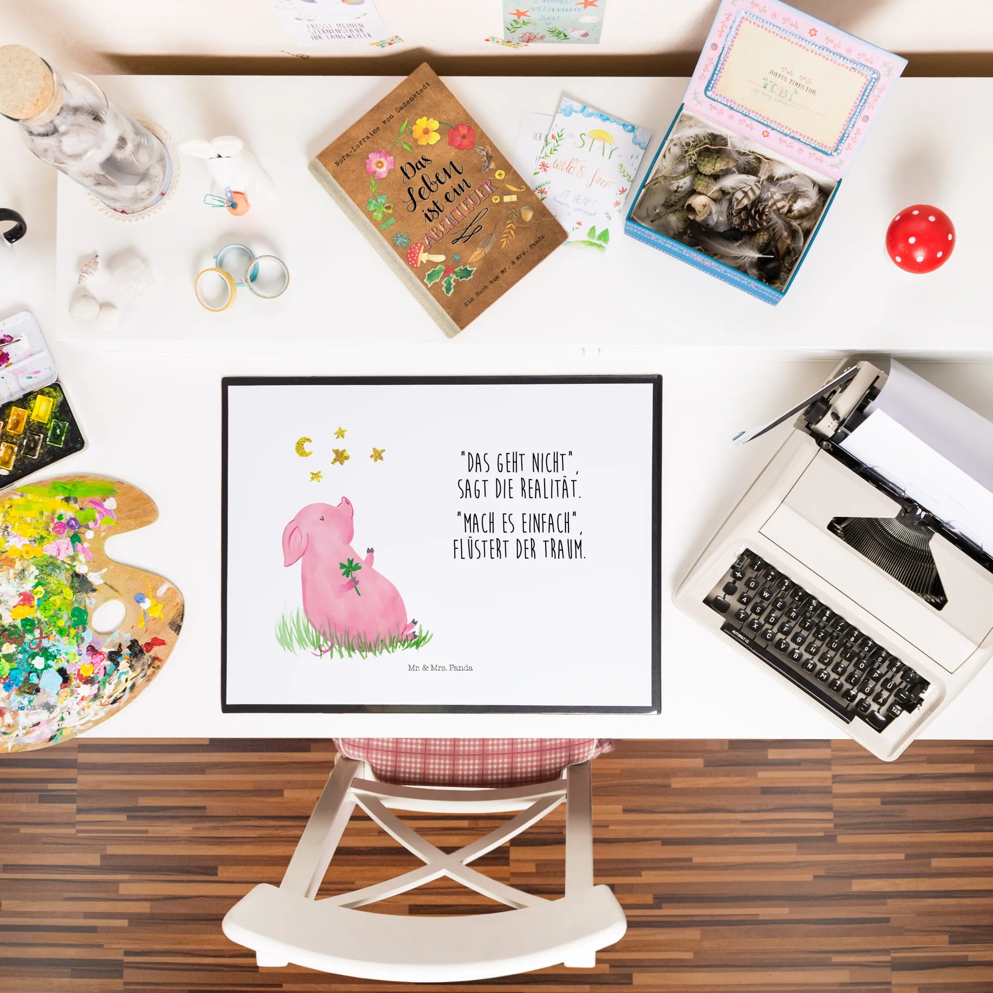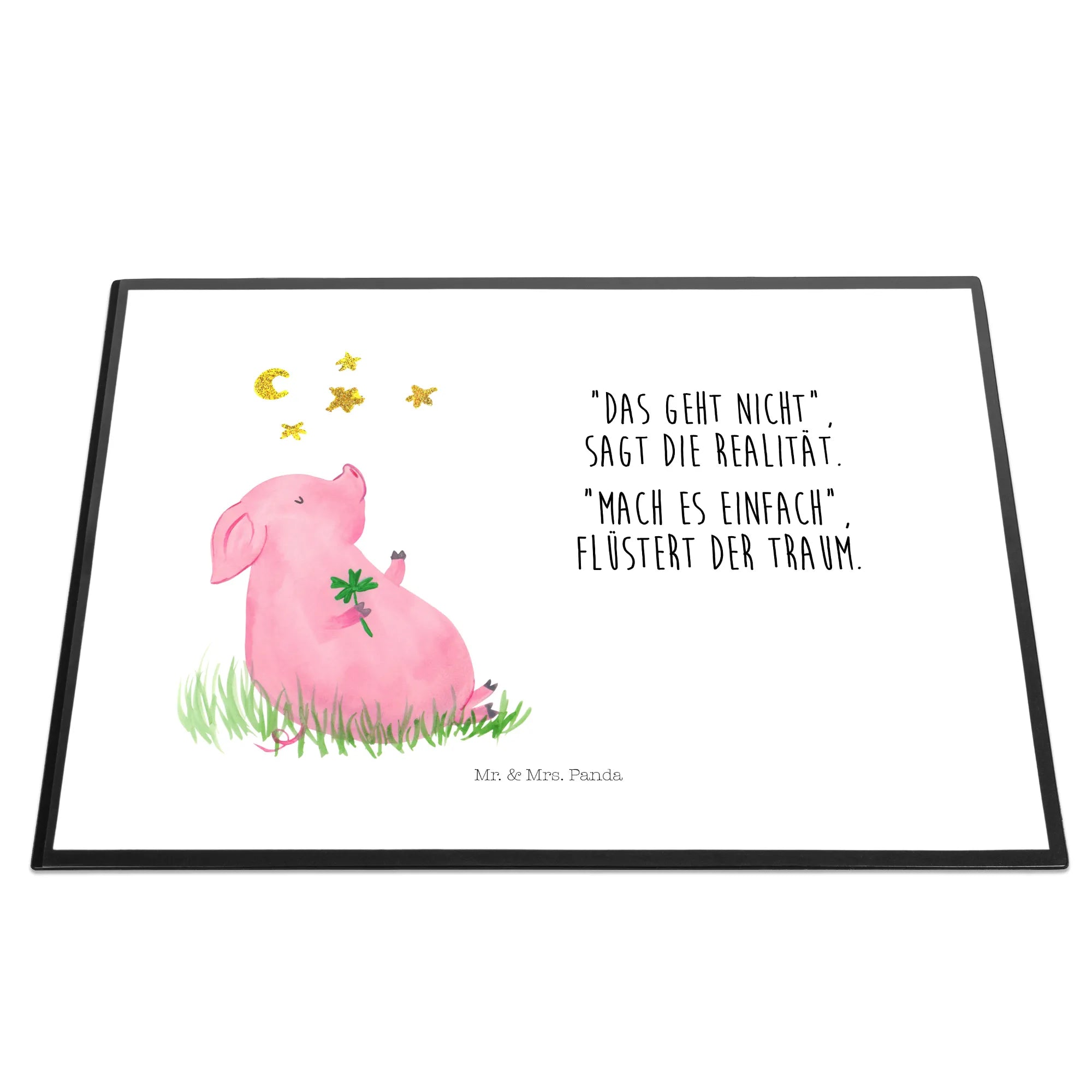 schreibtischunterlage Schwein Glück - mit Spruch - Weiß
