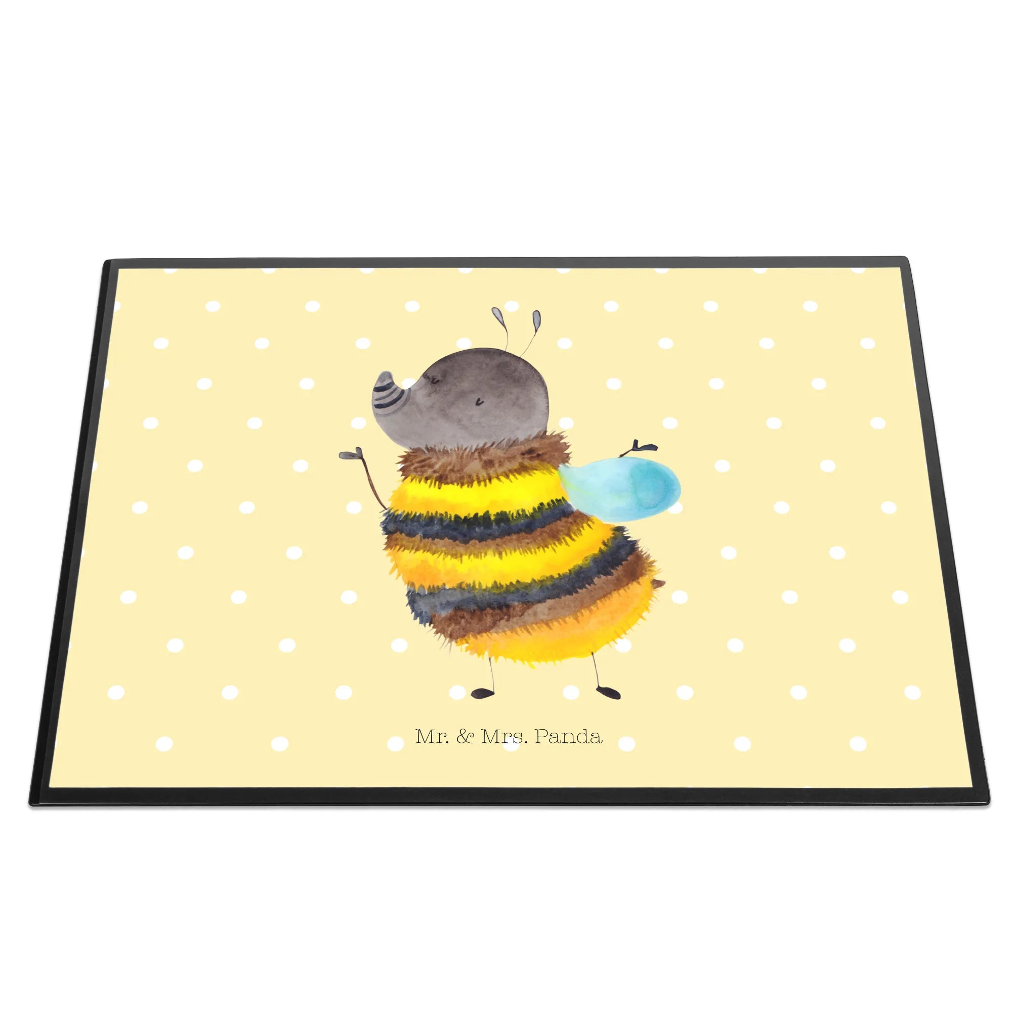 Schreibtischunterlage Hummel flauschig - mit Spruch - Gelb Pastell