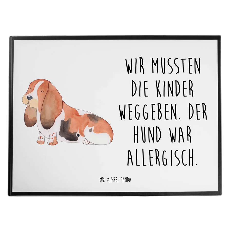 Schreibtischunterlage Hund Basset Hound - mit Spruch - Weiß