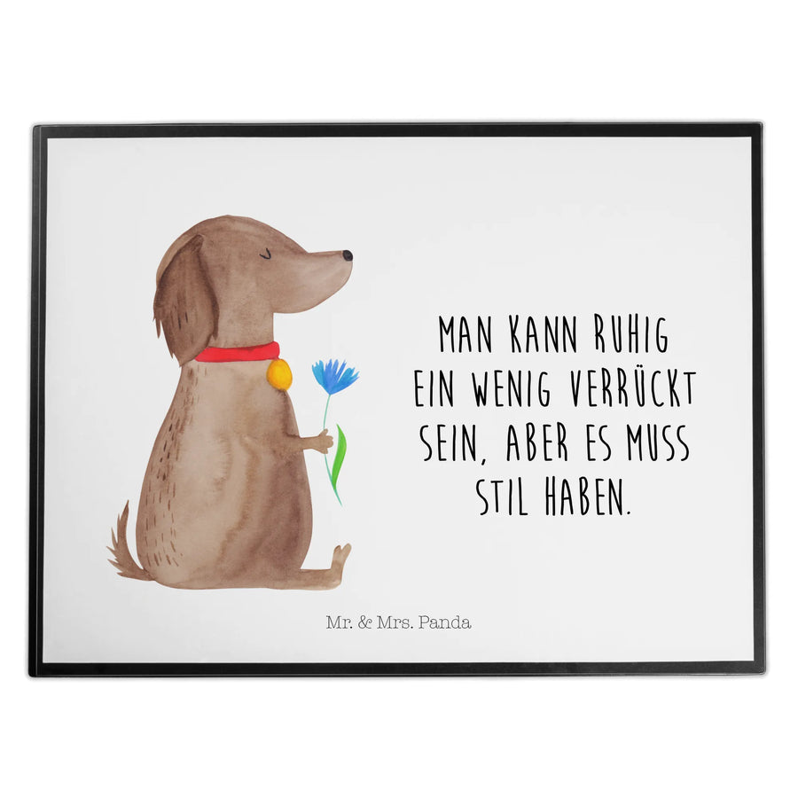 Entdecke die wunderschöne Schreibtischunterlage "Hund Blume" von Mr. & Mrs. Panda, die dein Arbeitsumfeld auf zauberhafte Weise bereichert! Diese Schreibtischauflage ist nicht nur ein echter Hingucker, sondern auch äußerst praktisch. Mit einem bezaubernden Hundemotiv und dem Slogan "Man kann ruhig ein wenig verrückt sein, aber es muss Stil haben." bringt sie Freude in jeden Büroalltag.