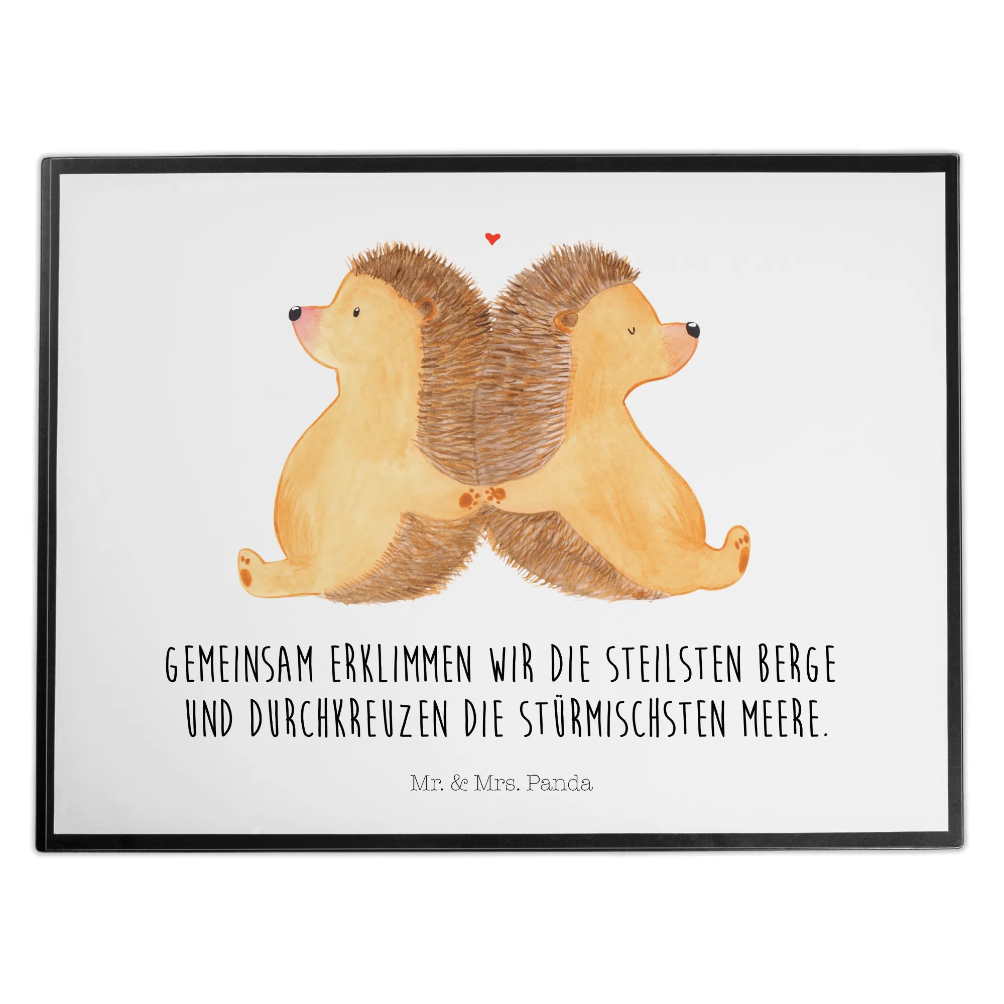 Schreibtischunterlage Igel händchenhaltend - mit Spruch - Weiß