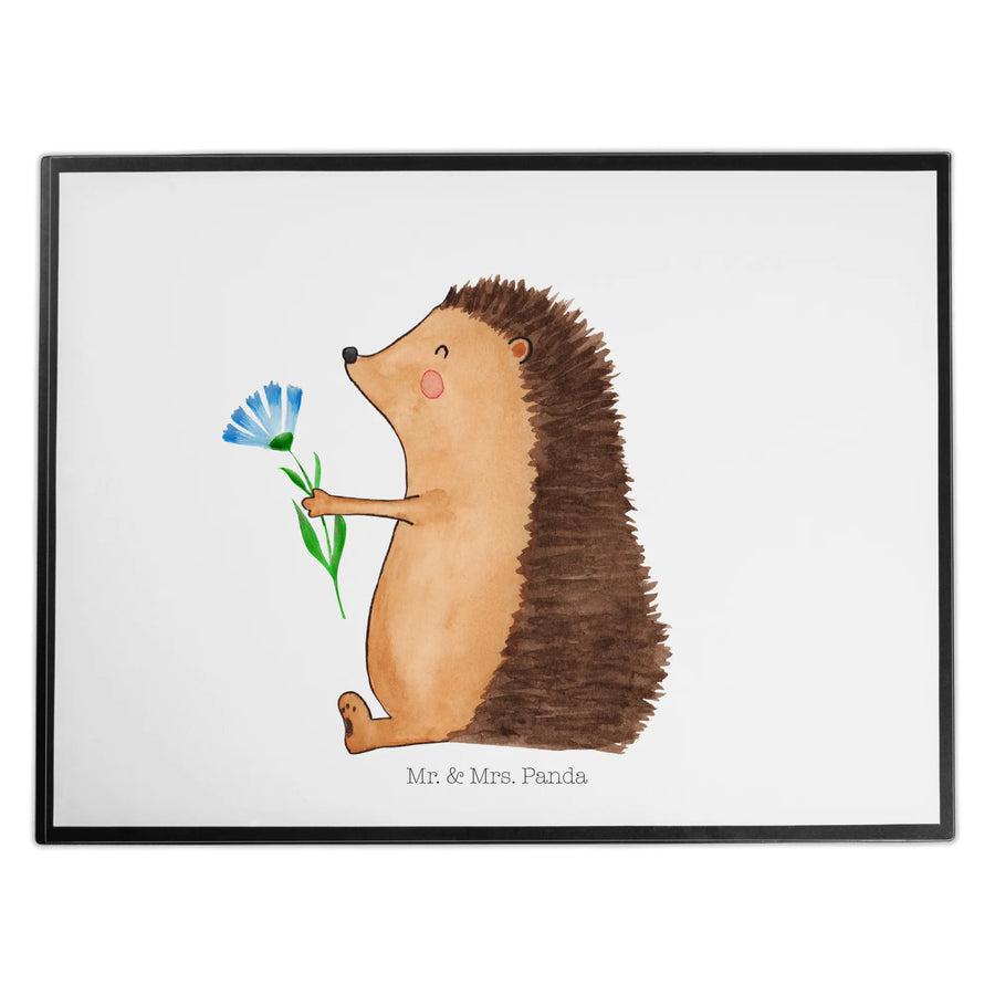 Schreibtischunterlage Igel Blumen - ohne Spruch - Weiß