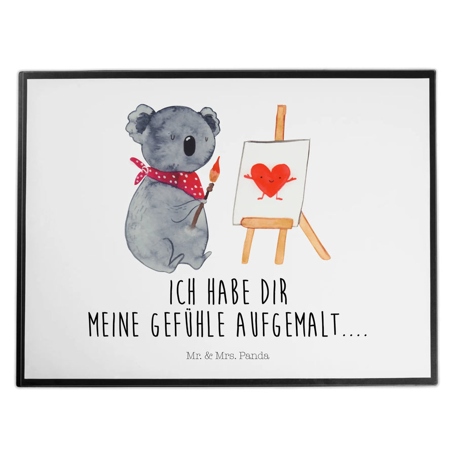 Die Schreibtischunterlage Koala Künstler von Mr. & Mrs. Panda ist ein wahres Must-Have für alle Liebhaber von süßen Designs und kreativen Ideen. Mit einem bezaubernden Motiv eines Koalabären, der sein Herz auf eine Leinwand malt, unterstreicht diese Unterlage die Bedeutung von Gefühlen und Achtsamkeit in unserem Alltag.