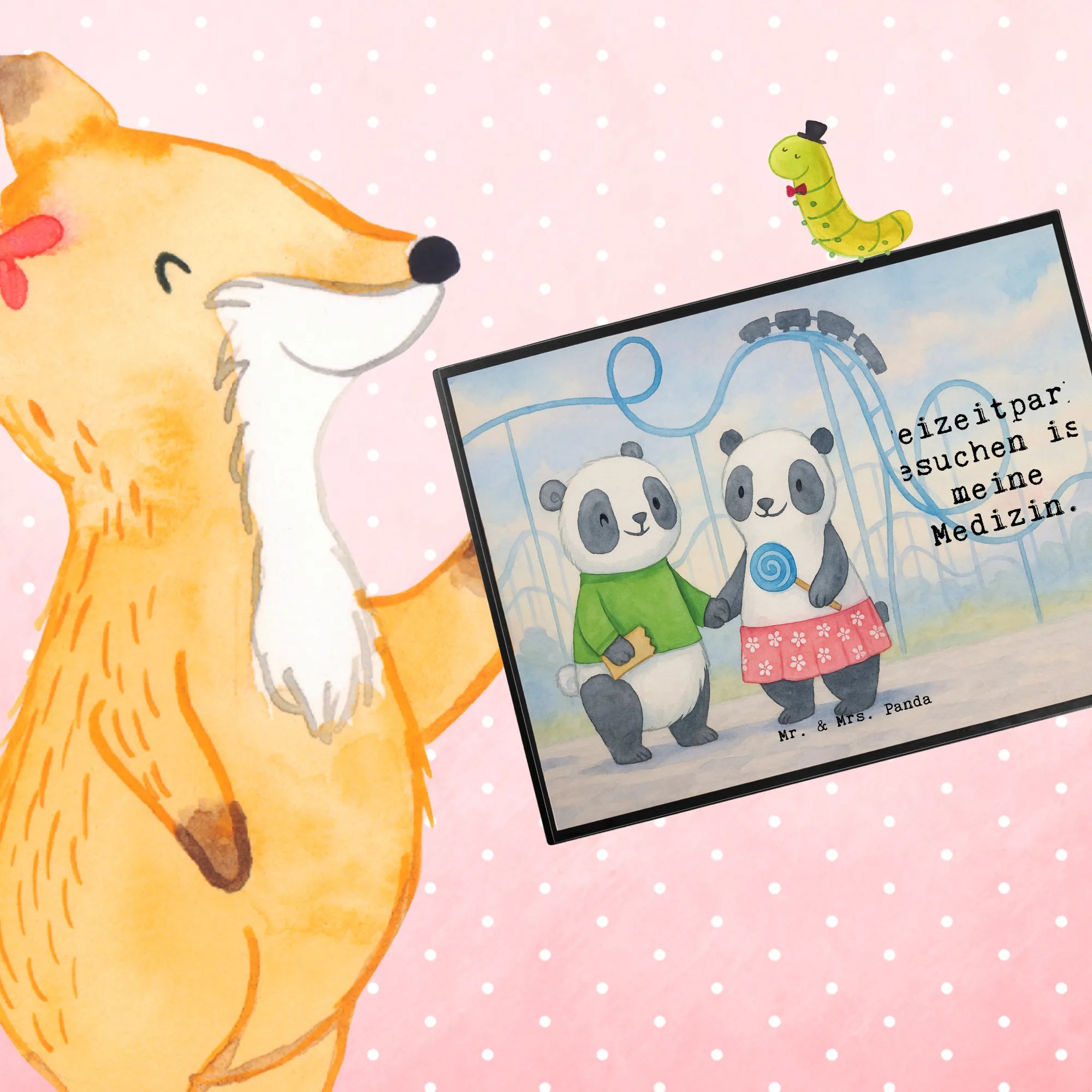Mr. & Mrs. Panda – Zwei Pandas besuchen den Freizeitpark | romantisches & fröhliches Motiv