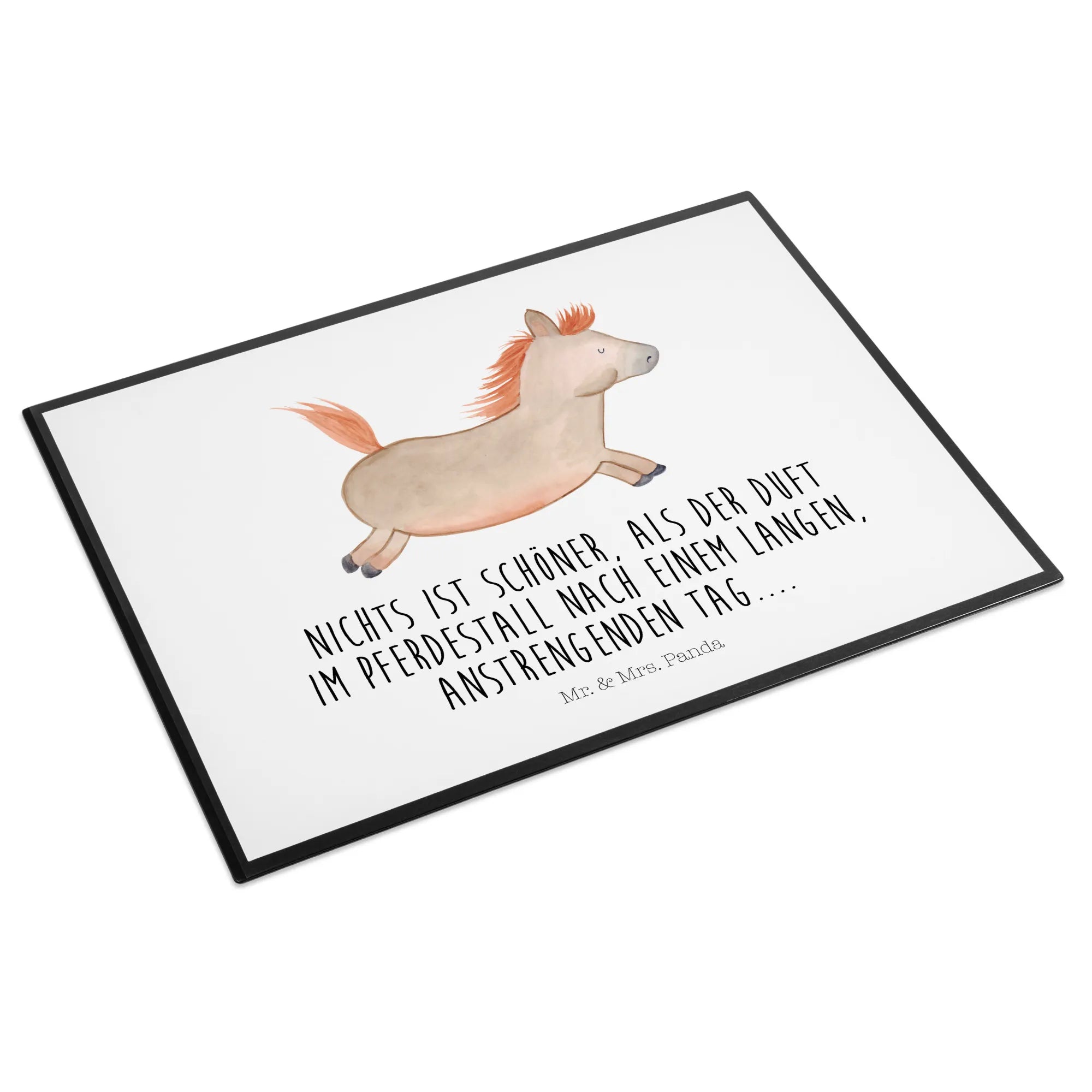 Entdecke die liebevolle Schreibtischunterlage von Mr. & Mrs. Panda mit dem bezaubernden Motiv "Pferd springt" aus der Bauernhof Kollektion. Diese Schreibtischauflage ist nicht nur ein praktischer Begleiter für deinen Alltag, sondern auch eine Hommage an die wunderbare Welt der Pferde und den einzigartigen Duft im Pferdestall nach einem langen Tag.