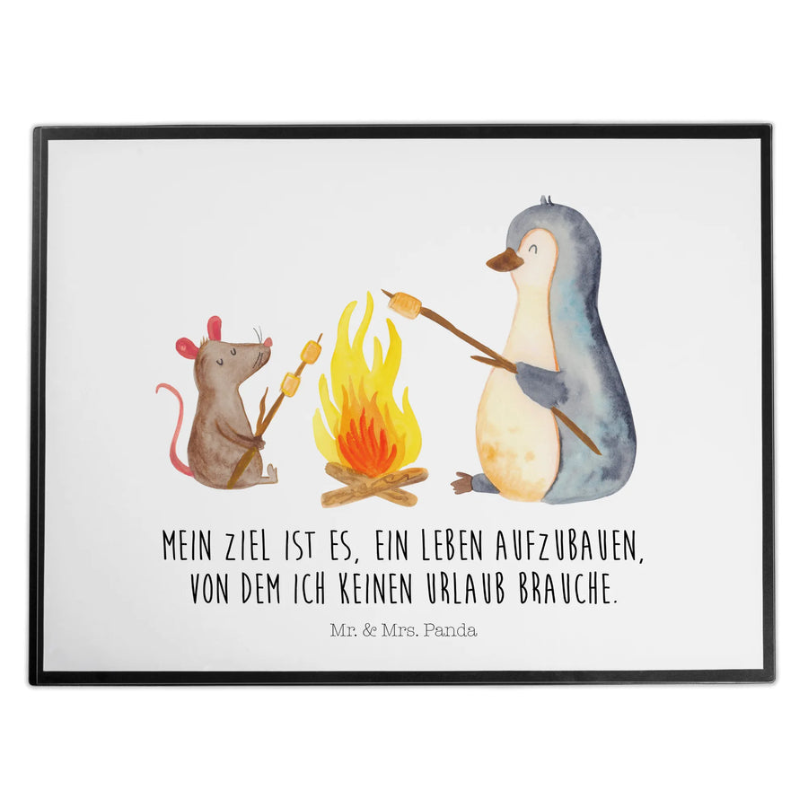 Schreibtischunterlage Pinguin Lagerfeuer - mit Spruch - Weiß