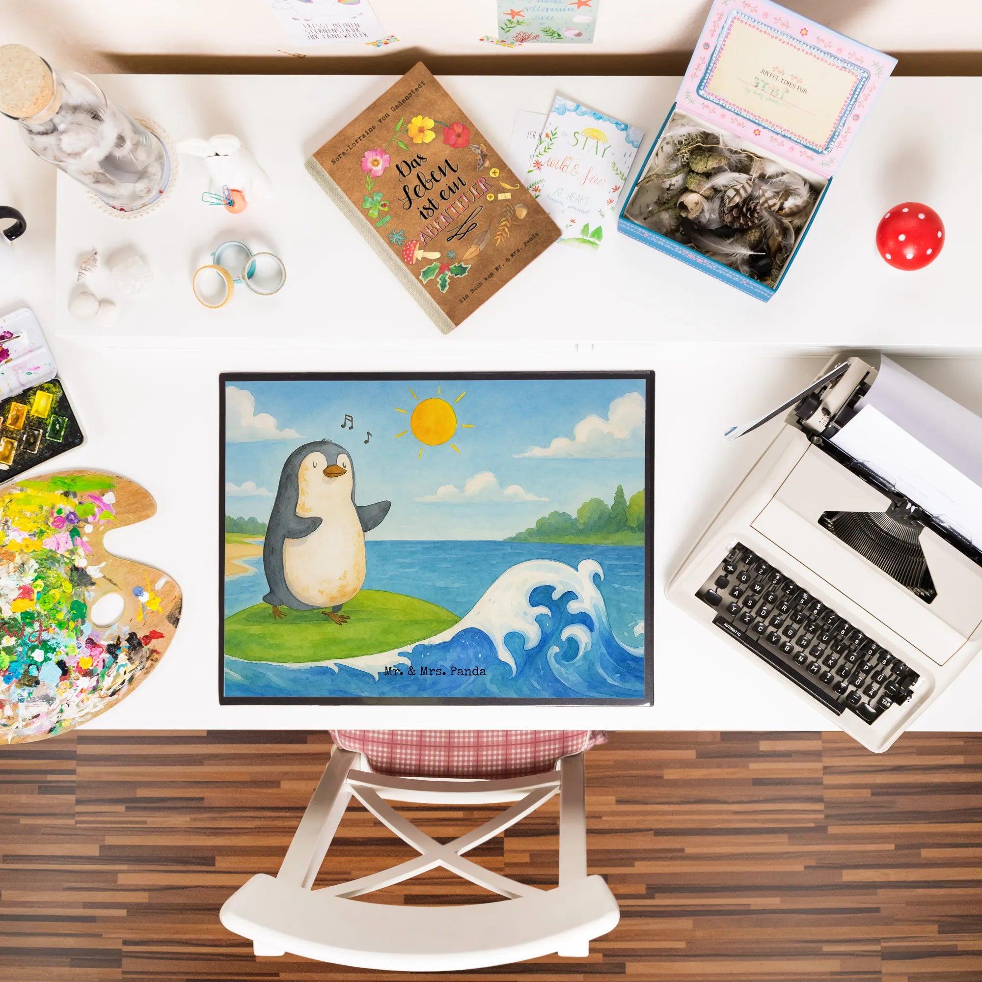 Schreibtischunterlage Pinguin Surfer Design - mit Spruch