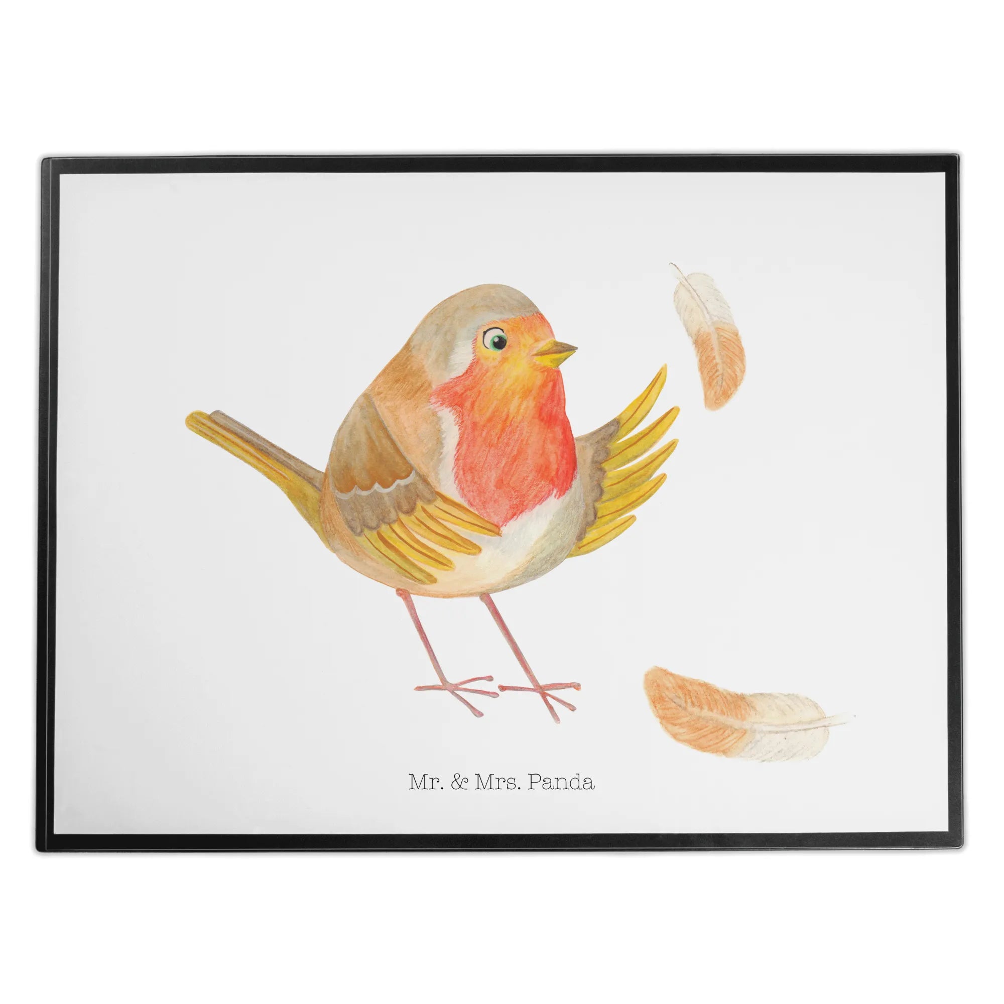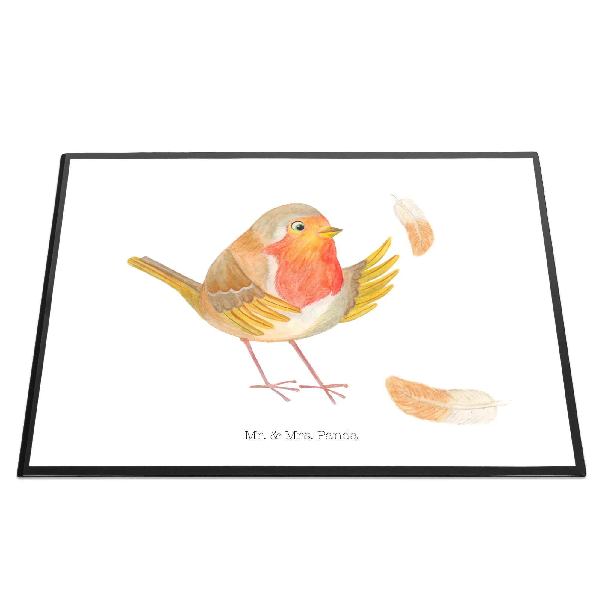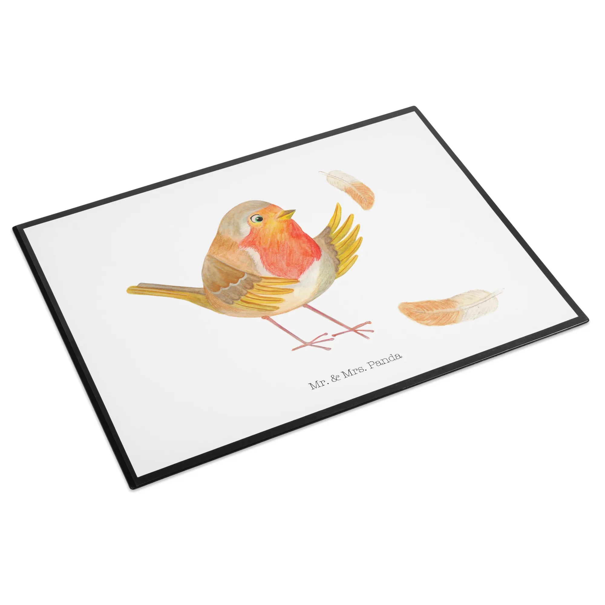 Schreibtischunterlage Rotkehlchen Federn - ohne Spruch - Weiß