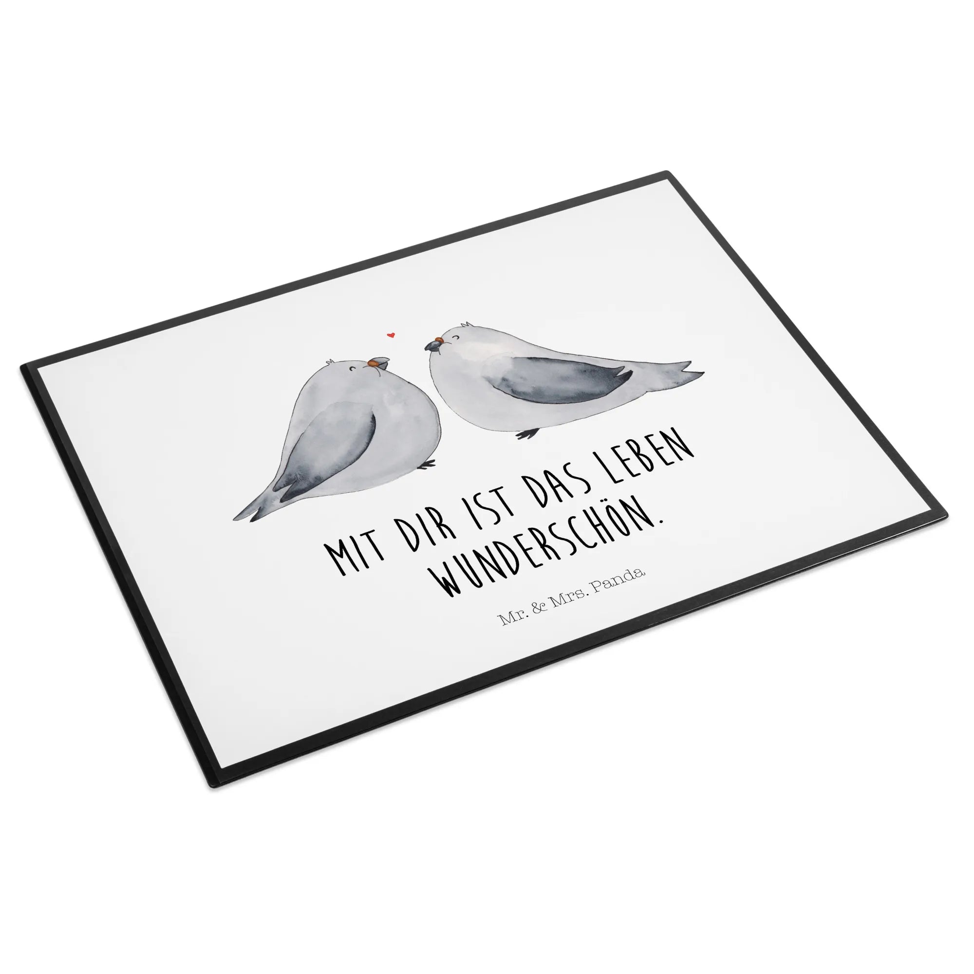 Schreibtischunterlage Turteltauben Liebe - ohne Spruch - Weiß