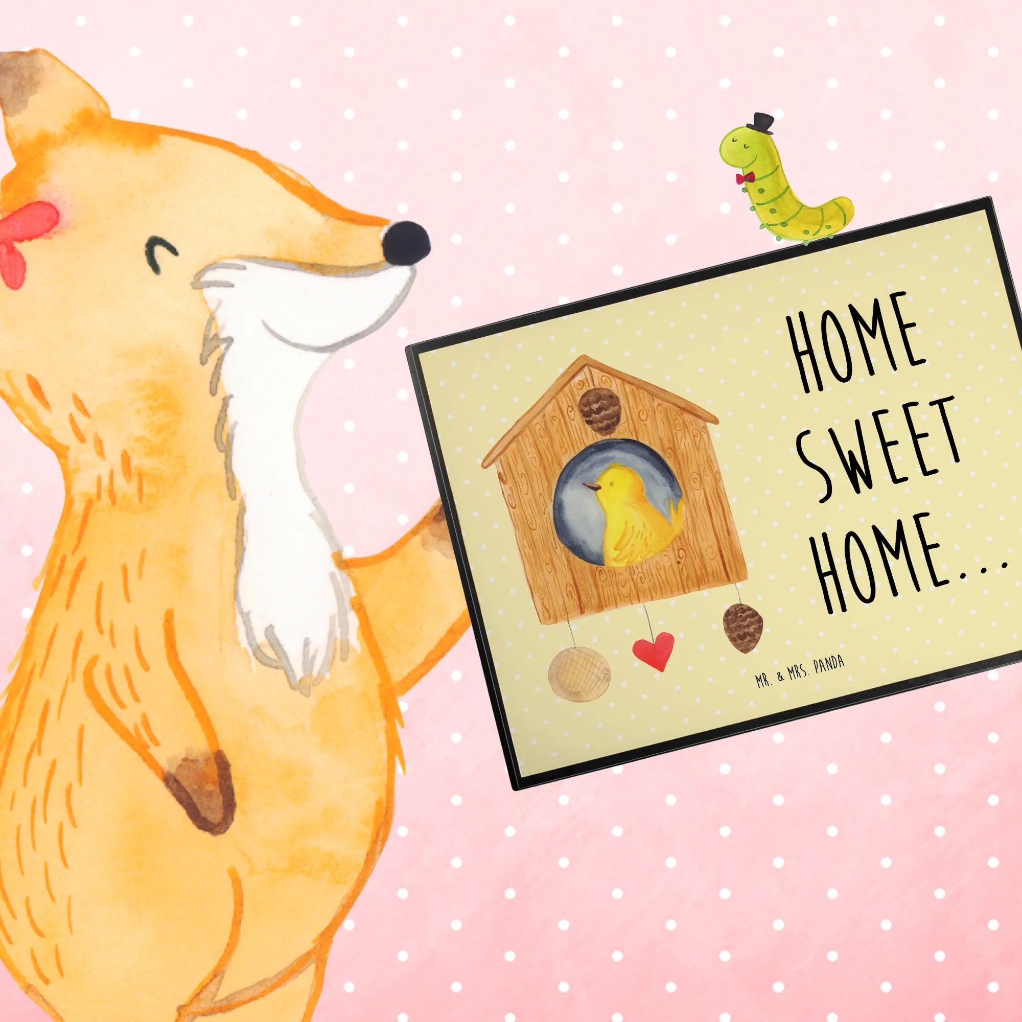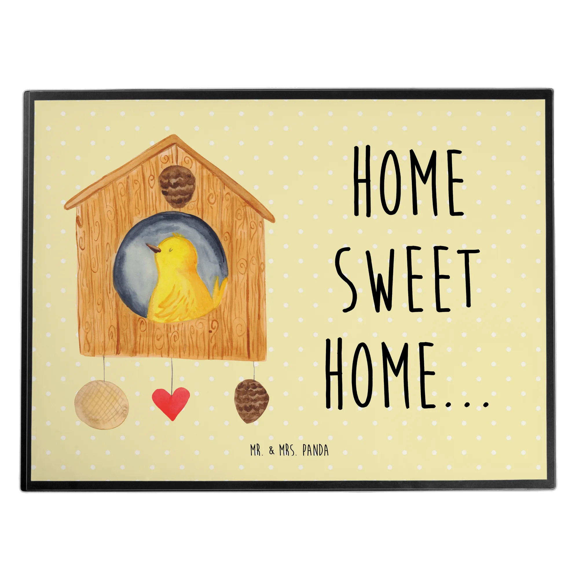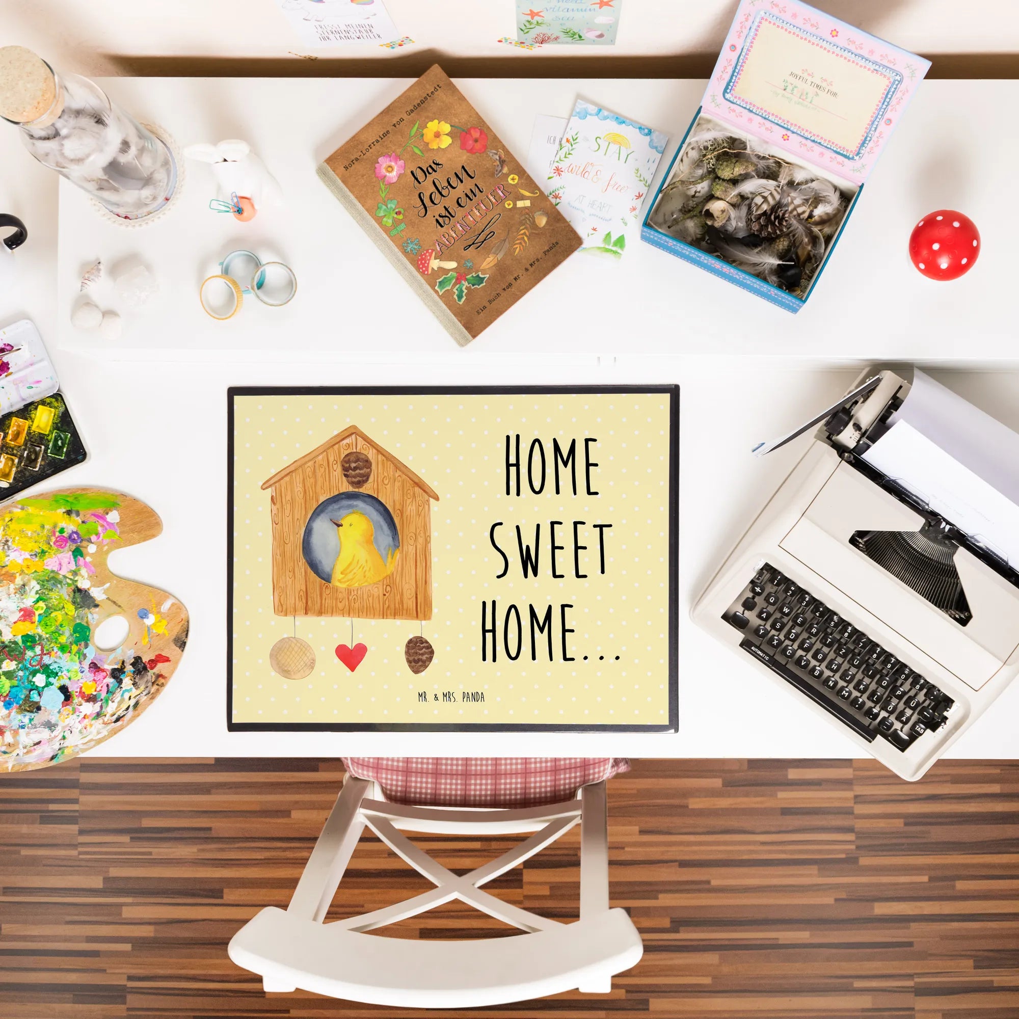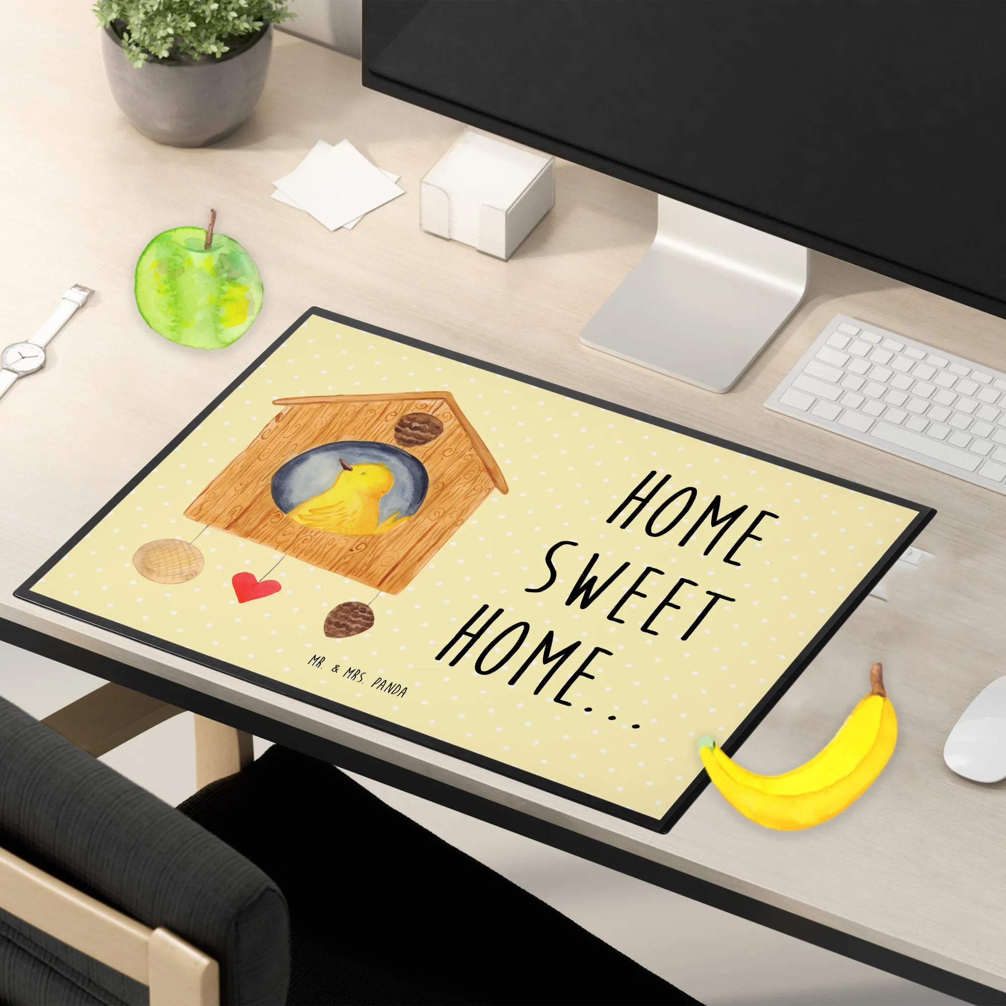 Schreibtischunterlage Vogelhaus Home - mit Spruch - Gelb Pastell