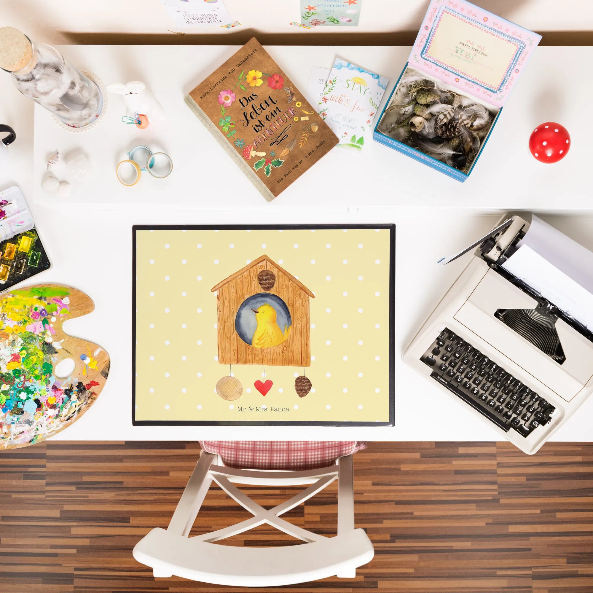 Gelber Vogel im Vogelhaus - Eigenheim Glück - Mr. & Mrs. Panda - Ideal für Familien und Nestbauer
