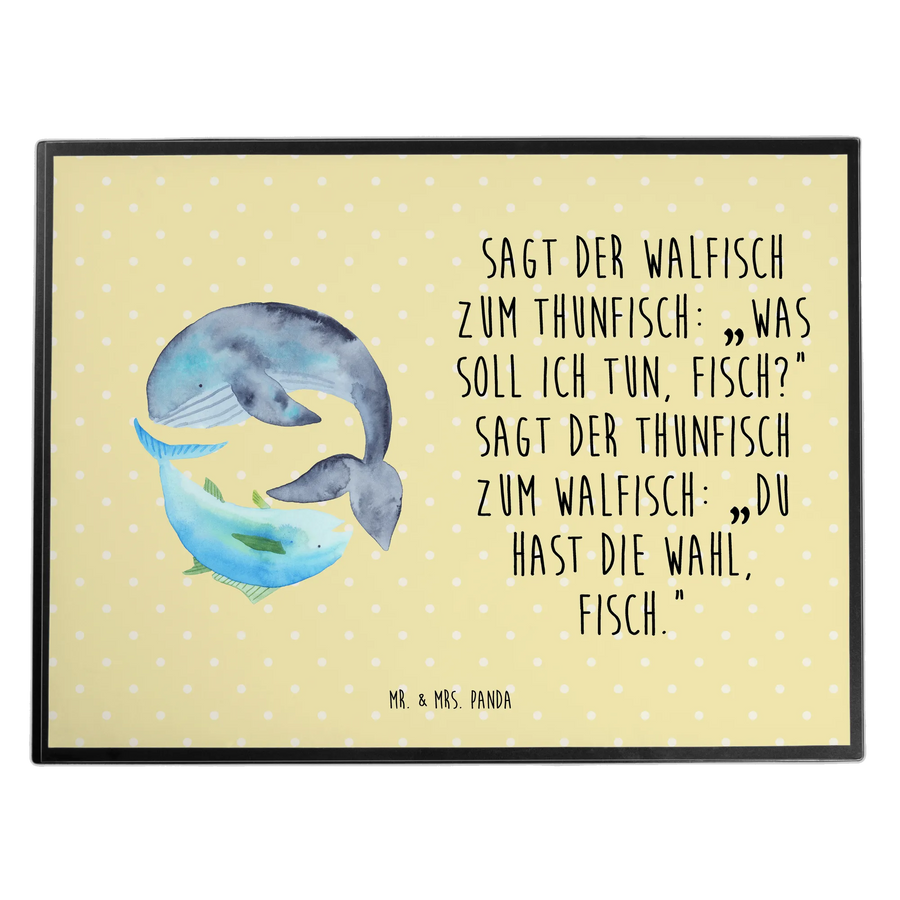 Schreibtischunterlage Walfisch Thunfisch - mit Spruch - Gelb Pastell