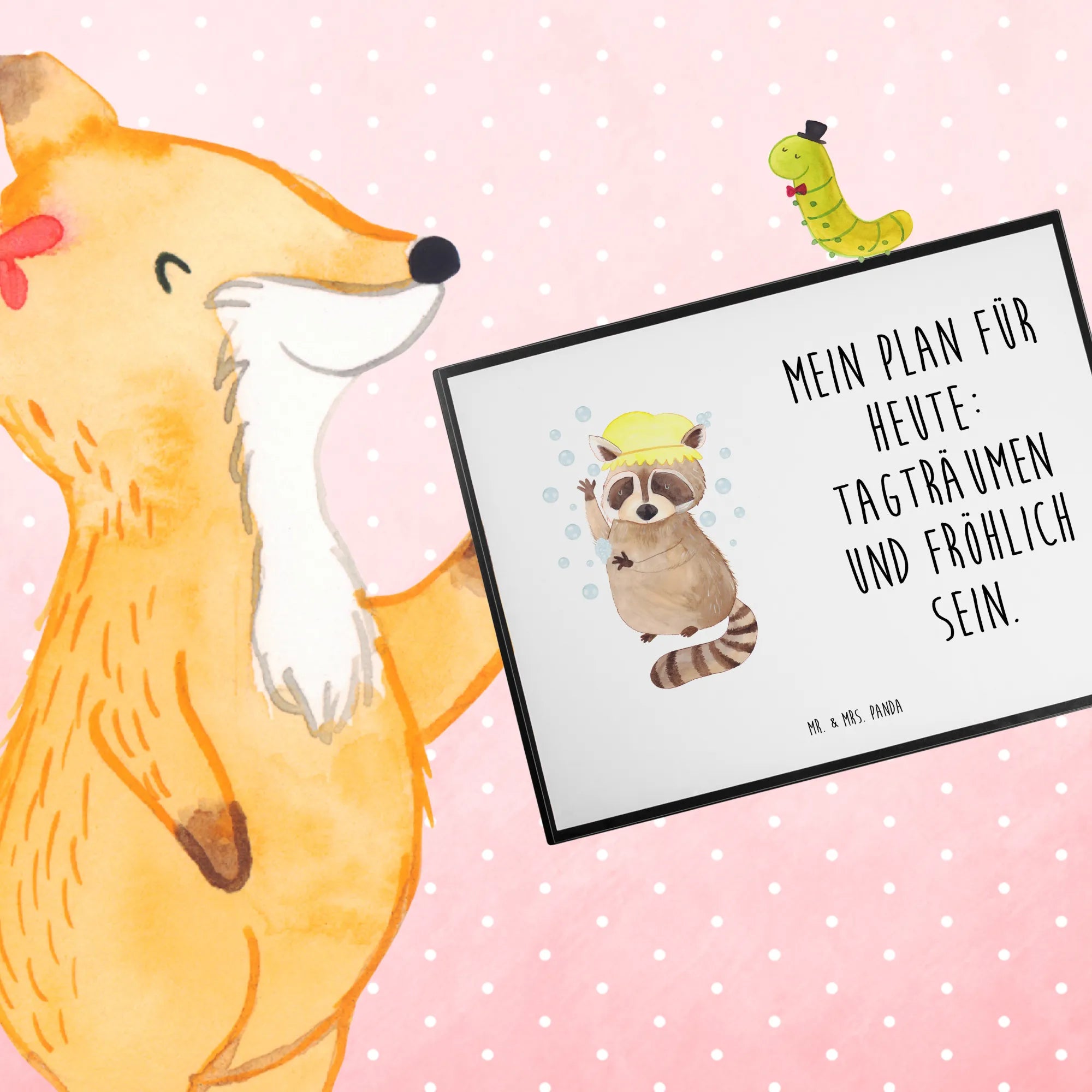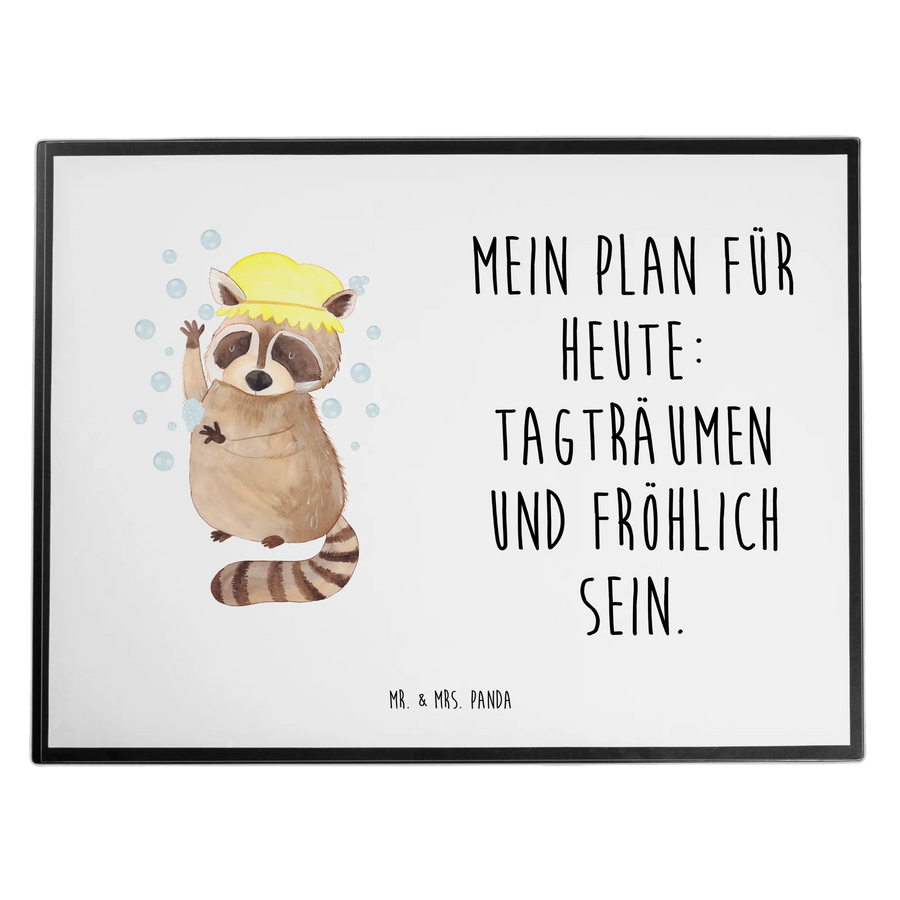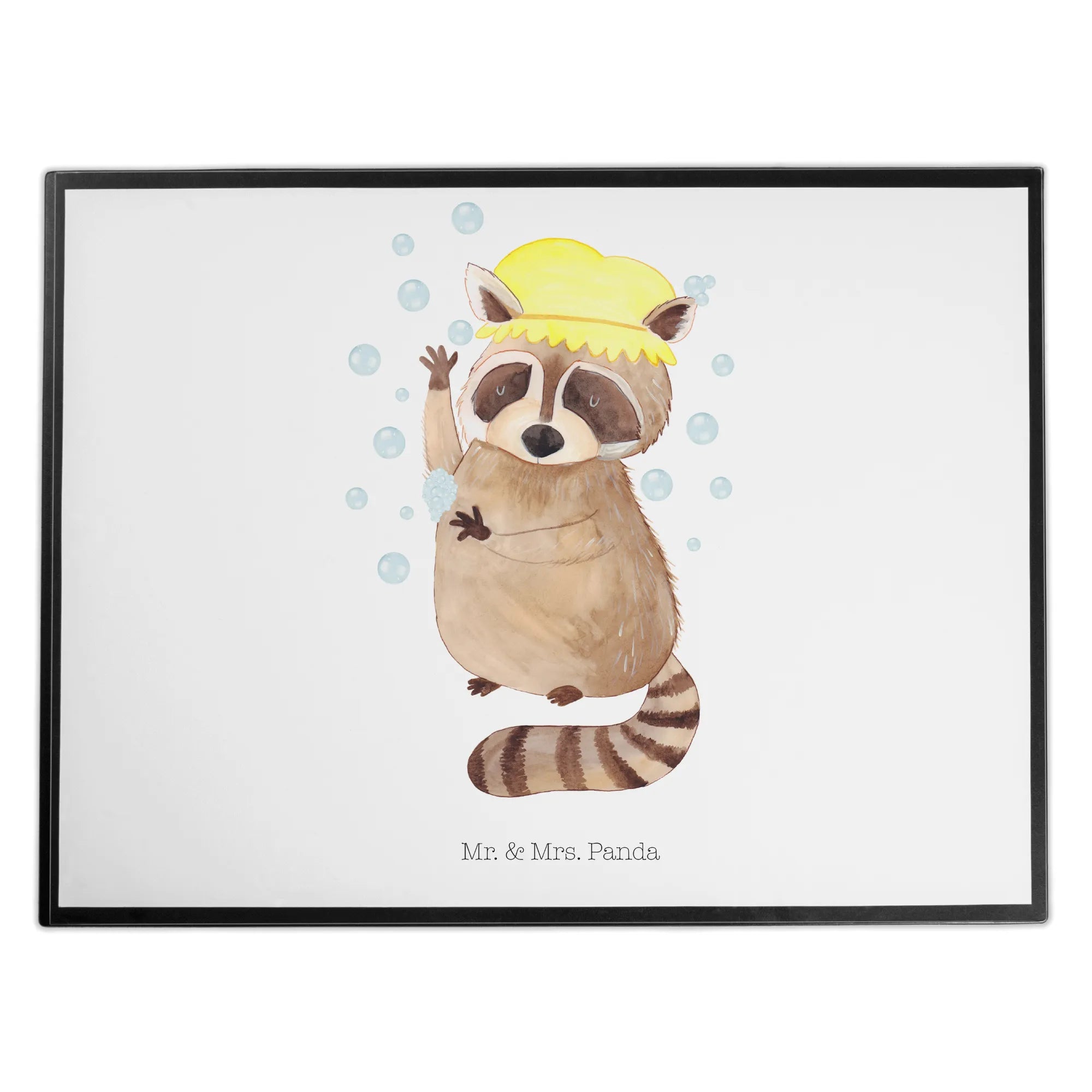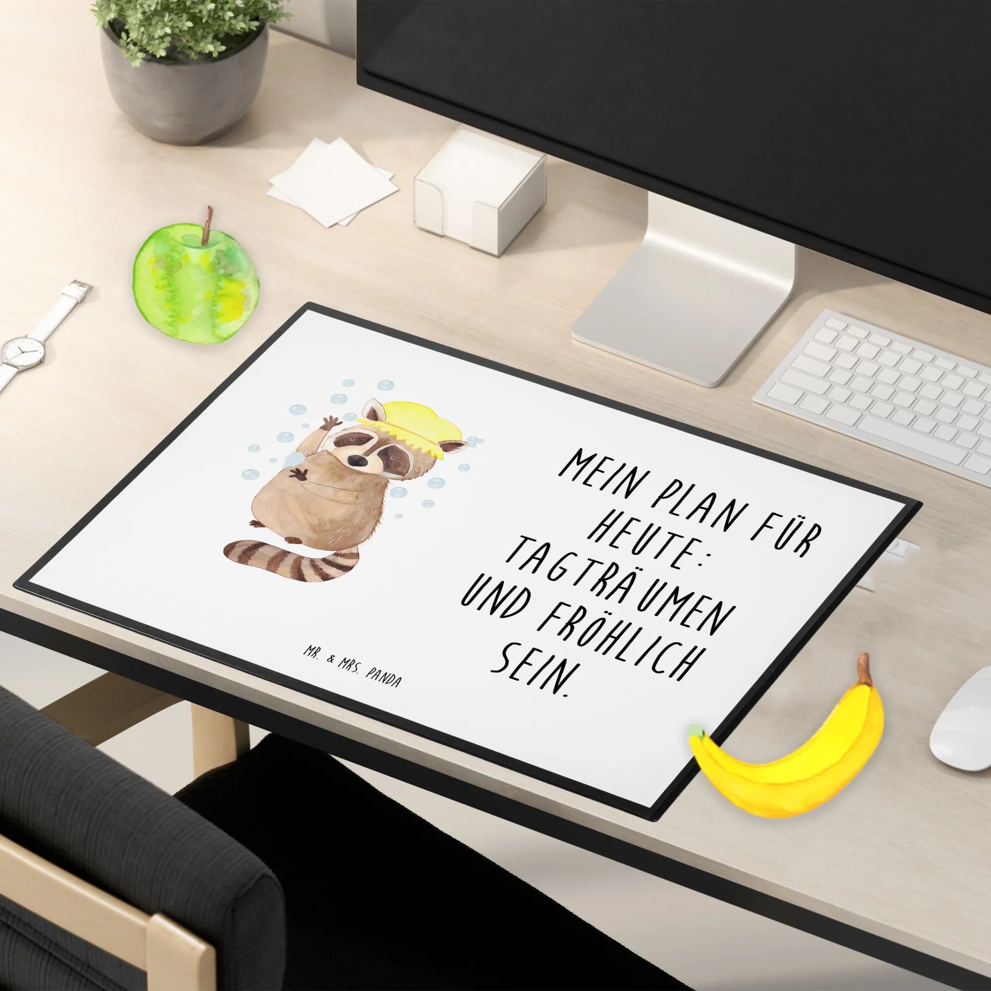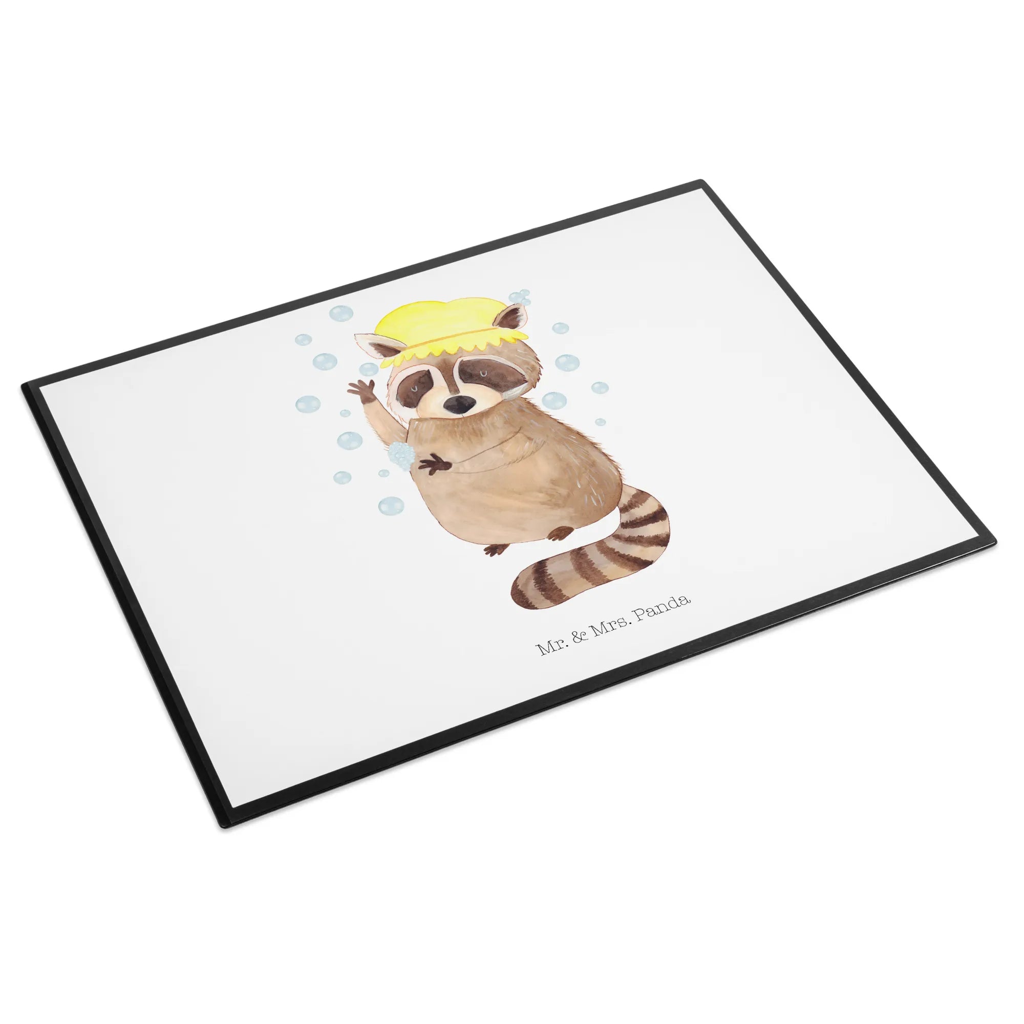 Schreibtischunterlage Waschbär - mit Spruch - Weiß