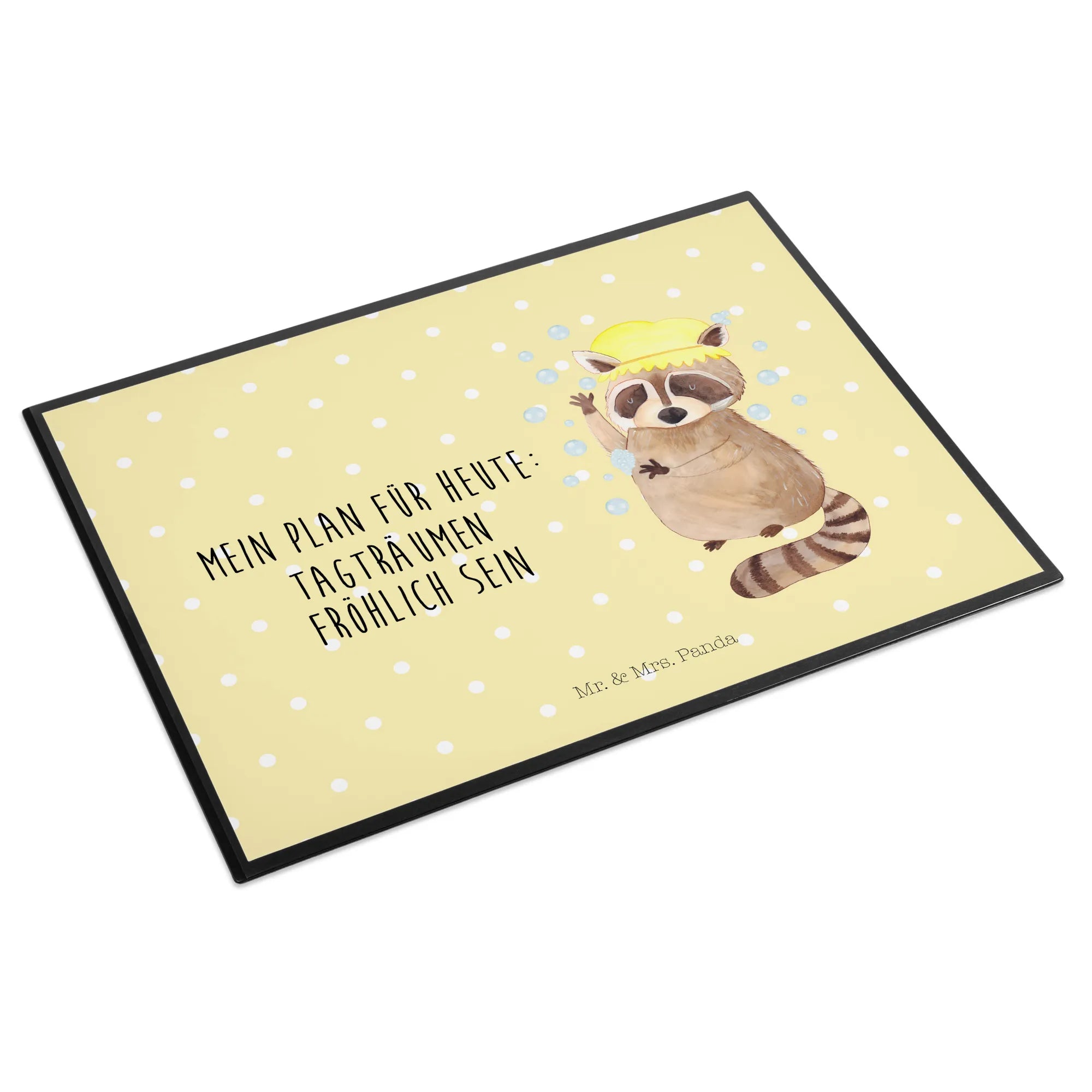 Ob für Dich selbst oder als typisches Geschenk für Freunde und Familie – die Schreibtischunterlage Waschbär von Mr. & Mrs. Panda ist die perfekte Wahl, um Freude und gute Laune zu verbreiten. Verwöhne Dich mit dieser wunderbaren Unterlage und erlebe jeden Tag das Gefühl, dass Deine Träume direkt neben Dir sitzen. Perfekt für jeden, der Schreibtischbedarf und Büroartikel liebt und gerne mit tollen Schreibwaren arbeitet. Also lege los, plane Deinen Tag und lass den kleinen Waschbären Dich zum Träumen inspirieren!