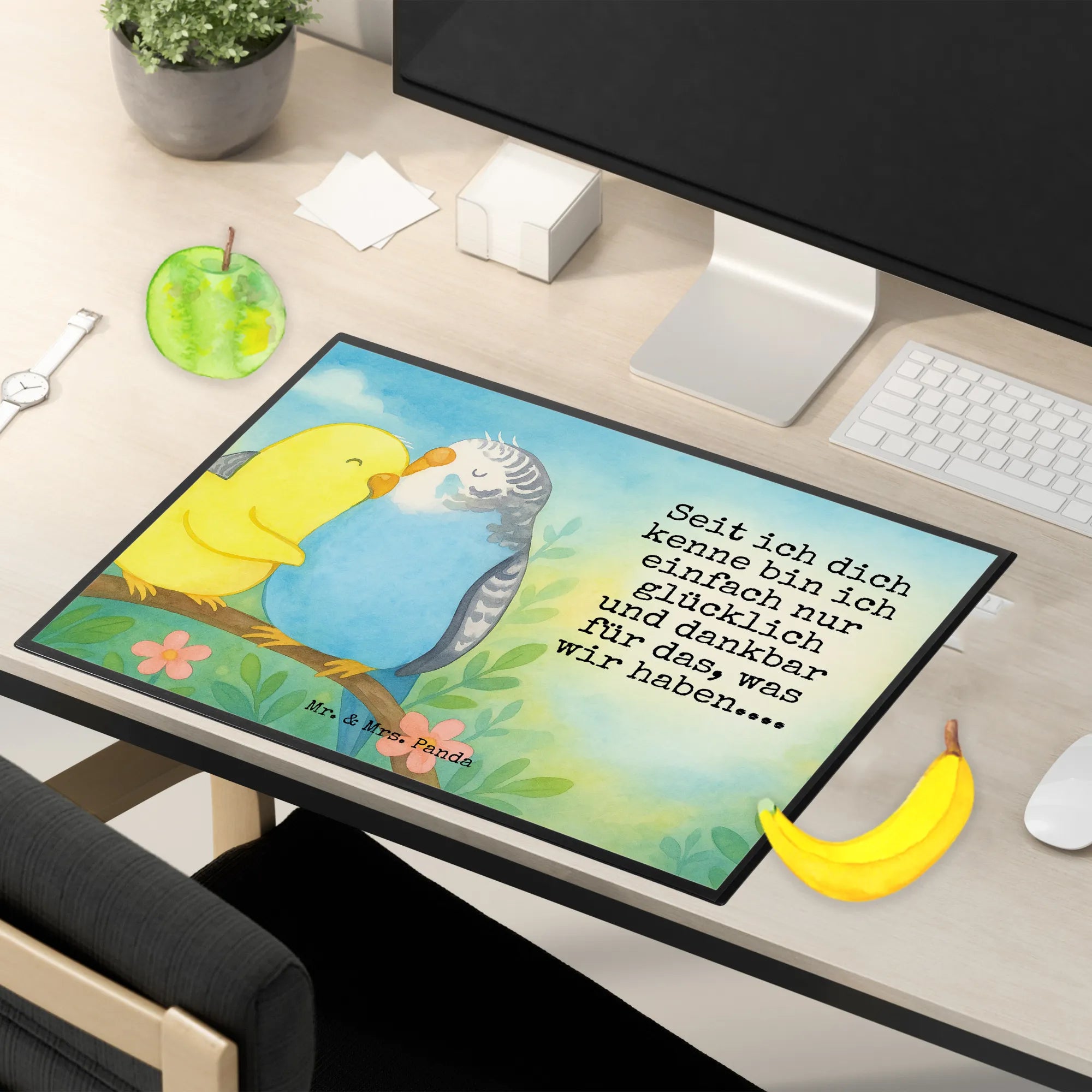 Schreibtischunterlage Wellensittich Liebe Design - mit Spruch