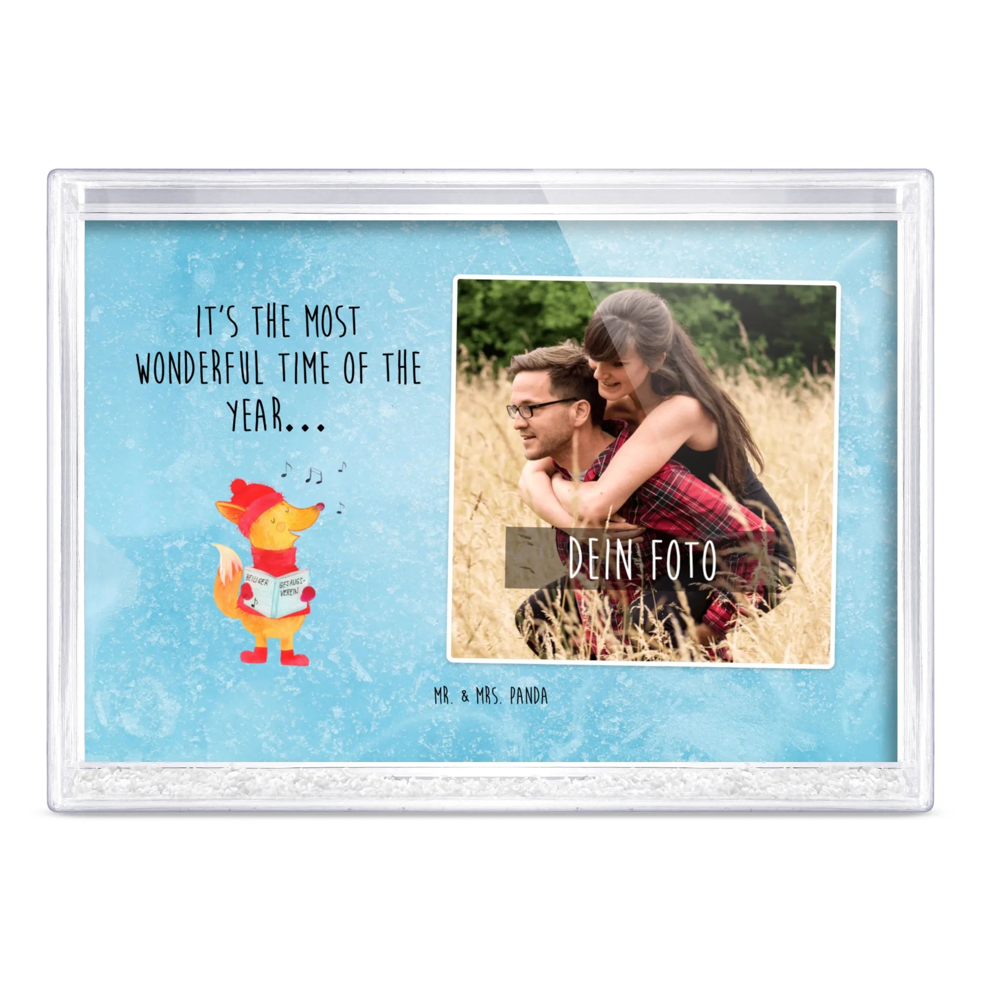 Der Schüttelrahmen mit Foto von Mr. & Mrs. Panda mit dem zauberhaften Motiv 'Fuchs Sänger' ist das perfekte Geschenk für die Weihnachtszeit. Ob für Freunde, Familie oder Kollegen – jeder liebt das Gefühl, einen liebevollen Gruß in Form einer Fotoschmuckstücks zu erhalten. Dieser wunderschöne Bilderrahmen bringt nicht nur die schönsten Momente zum Strahlen, sondern sorgt auch für eine festliche Stimmung in jedem Zuhause.