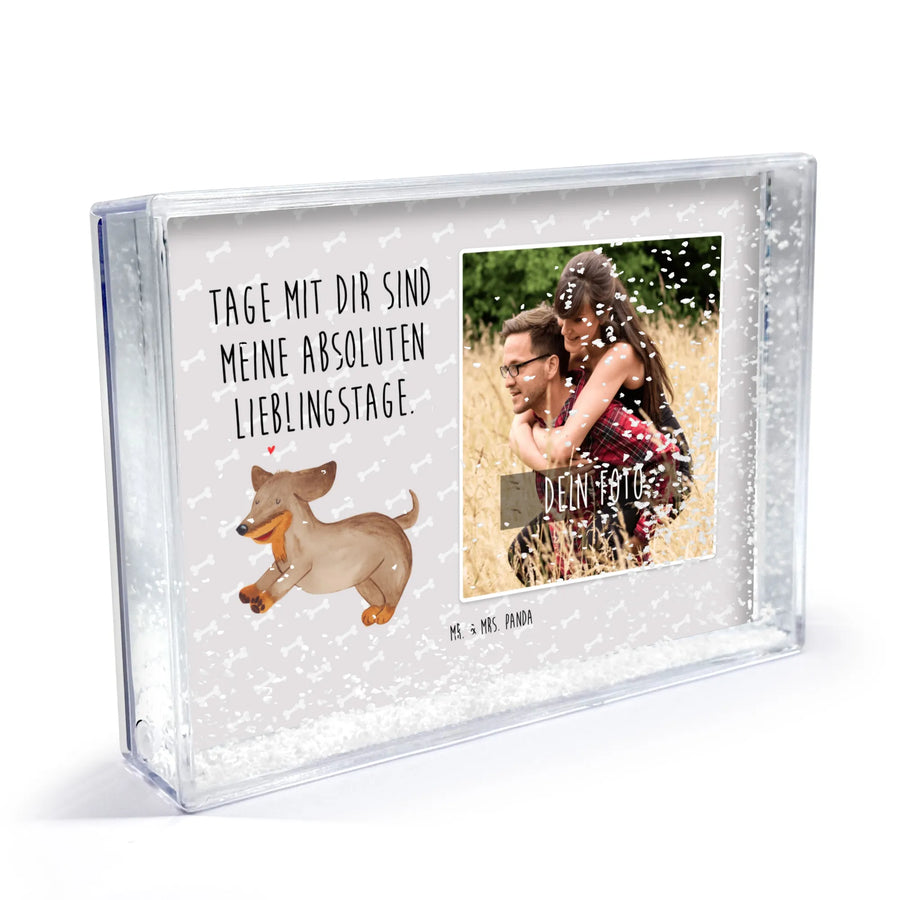 Dieses liebevoll gestaltete Rahmen mit Foto vereint dein persönliches Lieblingsfoto mit einem fröhlichen Dackelmotiv und dem herzlichen Spruch „Tage mit dir sind meine absoluten Lieblingstage.“ Ein originelles Fotogeschenk, das Erinnerungen zum Leben erweckt und mit einer zauberhaften Schnee-Füllung bei jeder Bewegung funkelt.