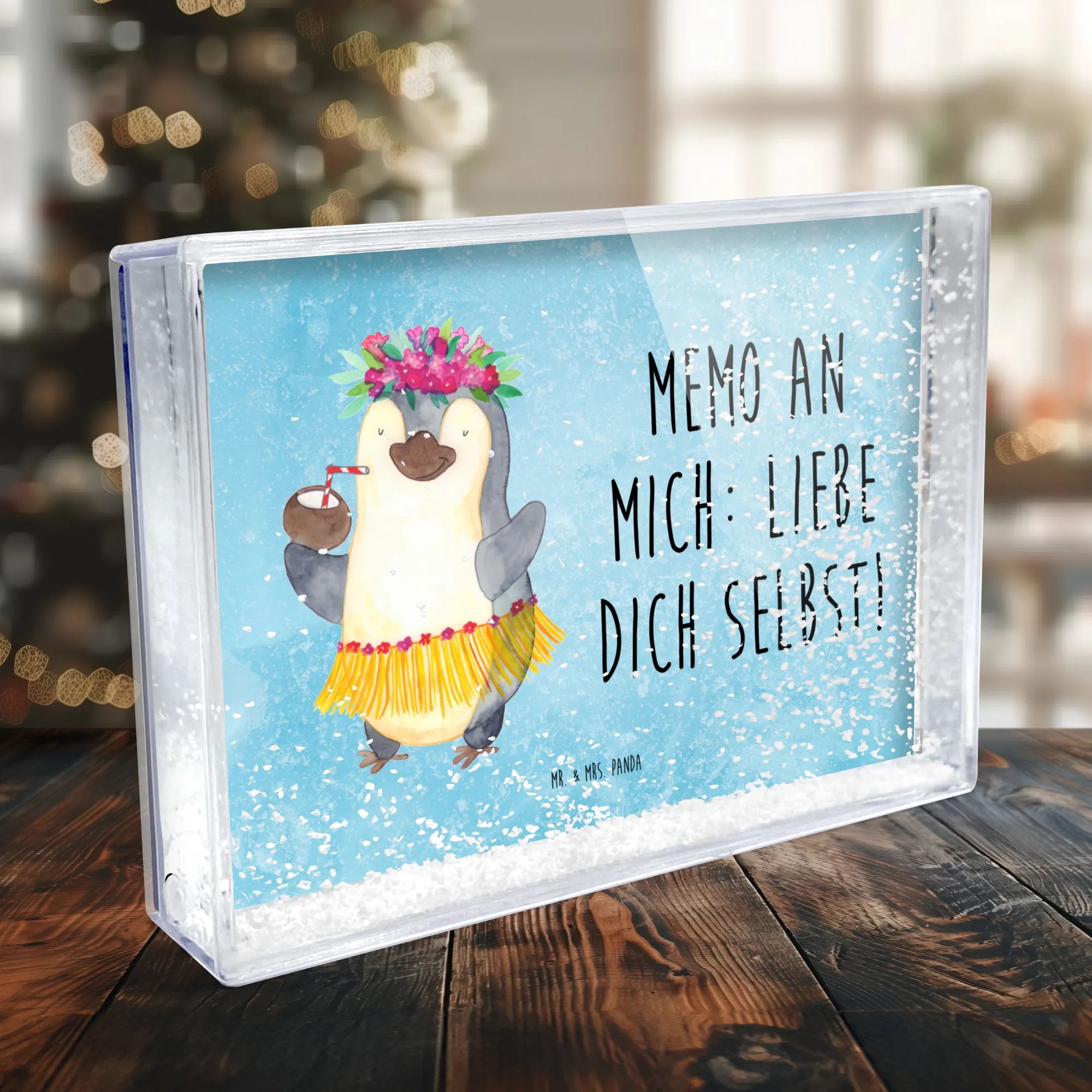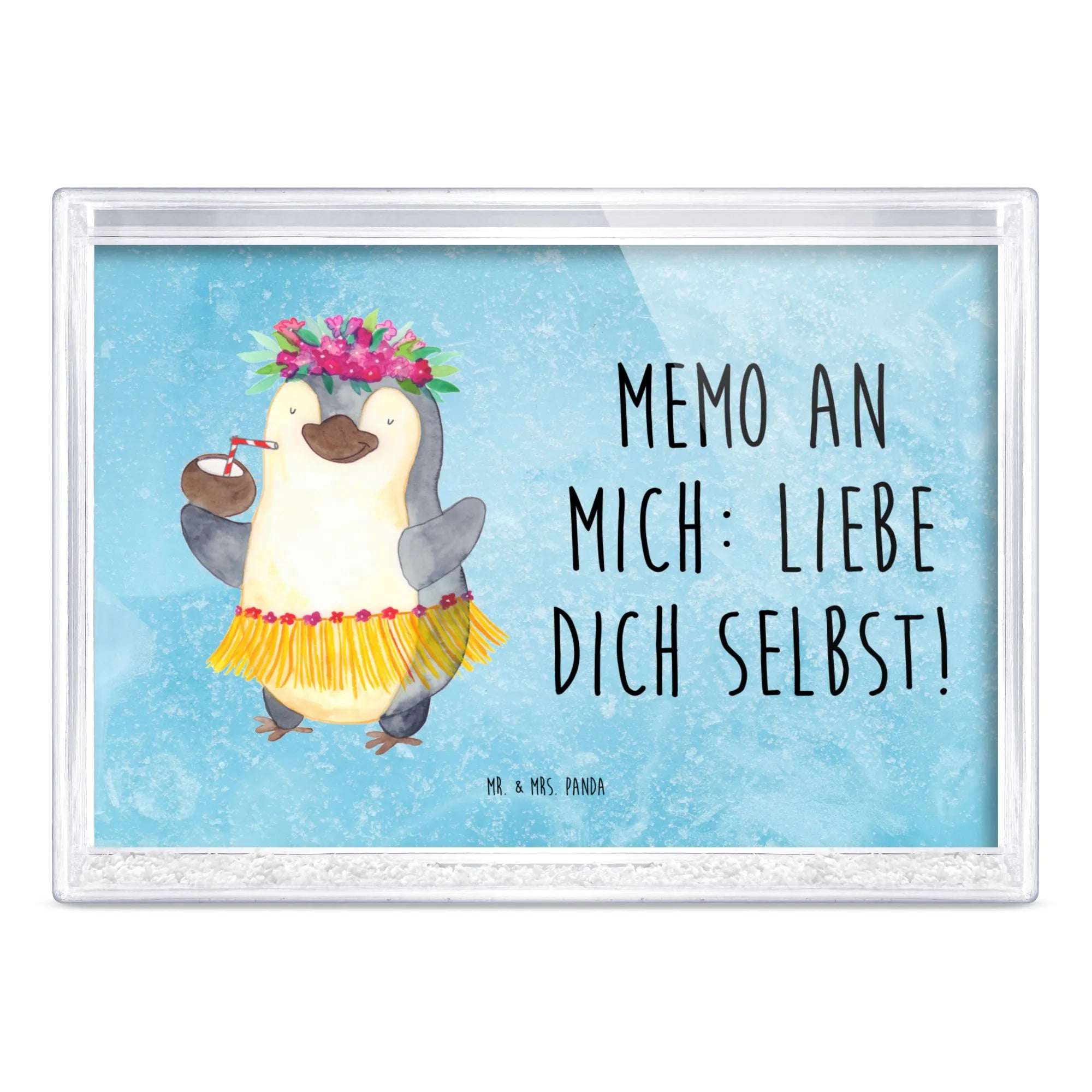 Unter der strahlenden Sonne Hawaiis, umgeben von den sanften Klängen des Meeres, findet ein Pinguin sein Glück. In seinem hawaiianischen Röckchen, eine Kokosnuss fest im Griff, verkörpert er die Leichtigkeit des Seins. Dieses liebevoll gestaltete Motiv von Mr. & Mrs. Panda lädt dich ein, dich von der Heiterkeit des Augenblicks mitreißen zu lassen. Der Spruch 'Memo an mich: Liebe dich selbst!' vibriert mit der Energie des Selbstrespekts und der Annahme. Es ist ein Ruf, zu den eigenen Träumen zu tanzen, sich in der eigenen Haut wohlzufühlen und sich für all die kleinen Freuden zu öffnen, die das Leben bereithält. Lass diesen kleinen Botschafter der Freude dein Herz berühren und dir zeigen, dass das größte Abenteuer darin besteht, dich selbst zu lieben.