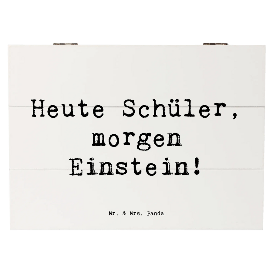 Die wunderbare Holzkiste von Mr. & Mrs. Panda ist das perfekte Geschenk für den Schulanfang! Mit dem inspirierenden Motiv "Heute Schüler, morgen Einstein!" aus der Mutmacher-Kollektion hilft sie, die aufregenden Erinnerungen an diesen besonderen Lebensabschnitt festzuhalten.