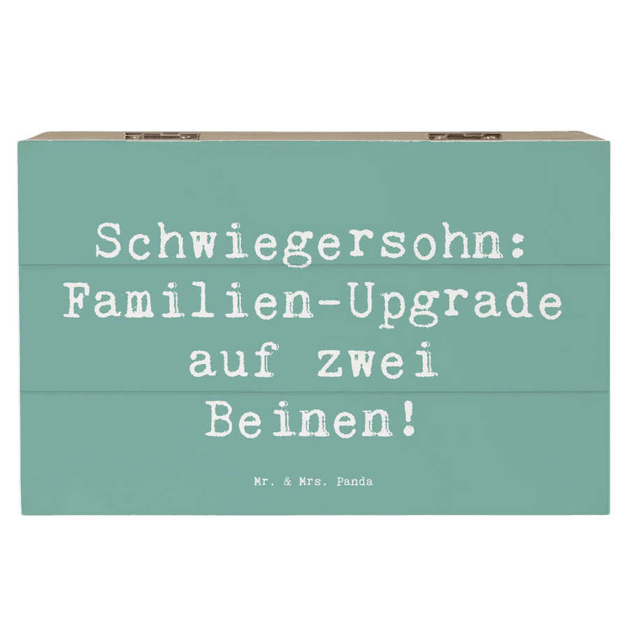 Die Holzkiste von Mr. & Mrs. Panda ist das ideale Geschenk für deinen Schwiegersohn! Mit dem liebevollen Spruch "Schwiegersohn: Familien-Upgrade auf zwei Beinen!" zeigt diese wunderschöne Kiste nicht nur Wertschätzung, sondern auch, wie wichtig diese besondere Beziehung in der Familie ist. Diese Erinnerungskiste ist perfekt, um all die kleinen Schätze und Erinnerungen zu bewahren, die im Laufe der Jahre gesammelt werden. Ob für besondere Anlässe wie Geburtstage, Hochzeiten oder einfach nur als Dankeschön – diese Kiste ist ein ganz besonderes Geschenk für jeden Schwiegersohn.