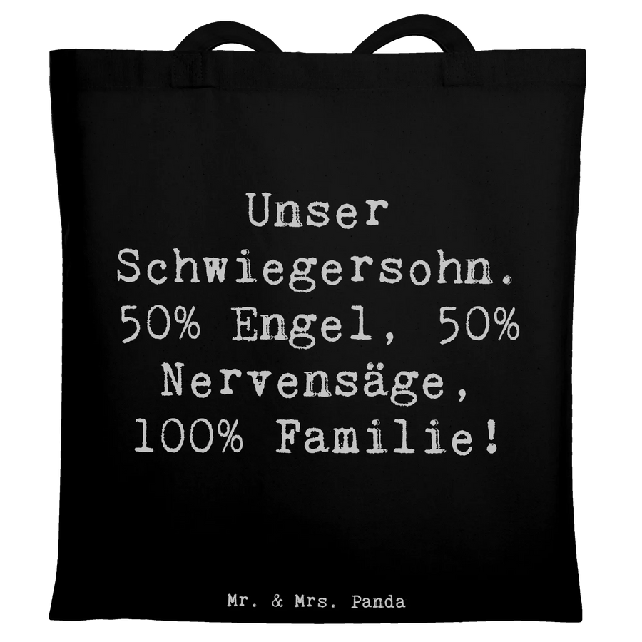 Tragetasche Spruch Unser Schwiegersohn. 50% Engel, 50% Nervensäge, 100% Familie! - Schwarz