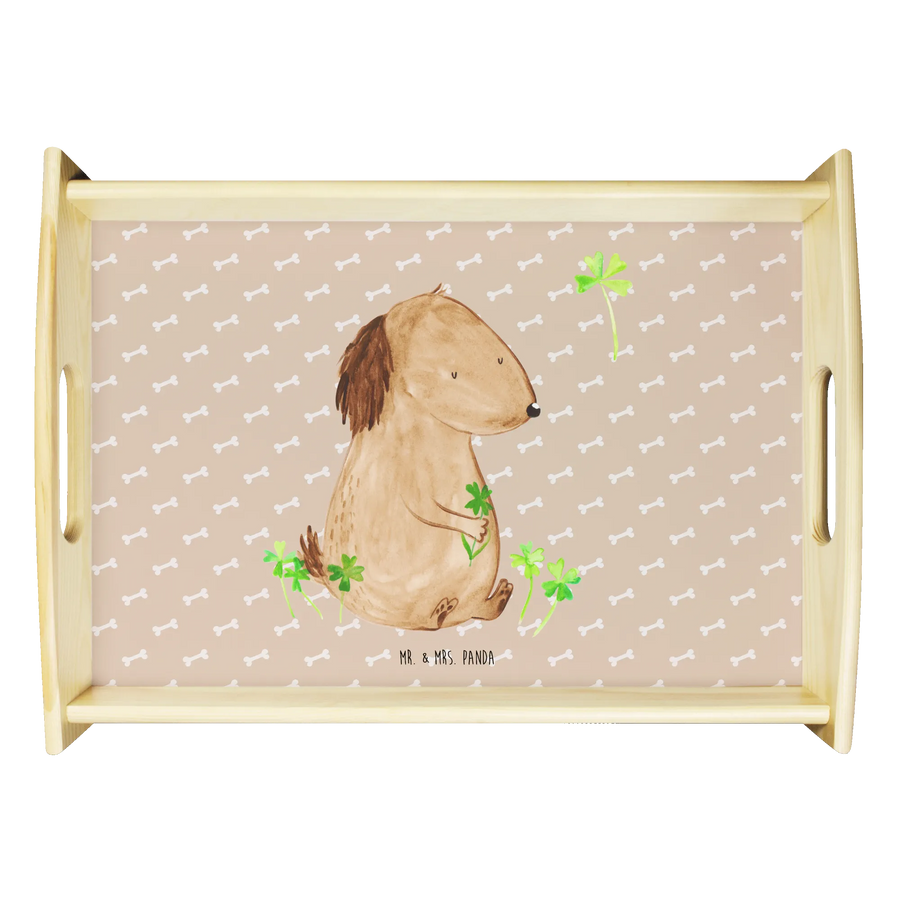 Das Serviertablett mit dem bezaubernden Hundemotiv und dem Kleeblatt von Mr. & Mrs. Panda ist das ideale Geschenk für alle Hundeliebhaber! Hergestellt aus lasiertem Echtholz, vereint dieses Tablett Funktionalität mit einem liebevollen Design.