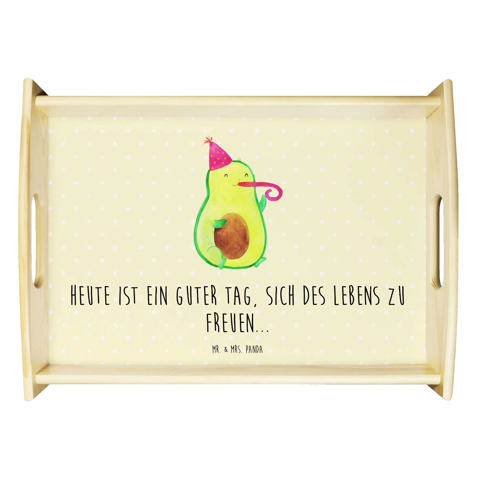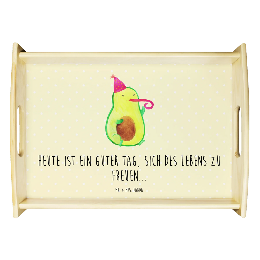Serviertablett Avocado Feier - mit Spruch - Gelb Pastell