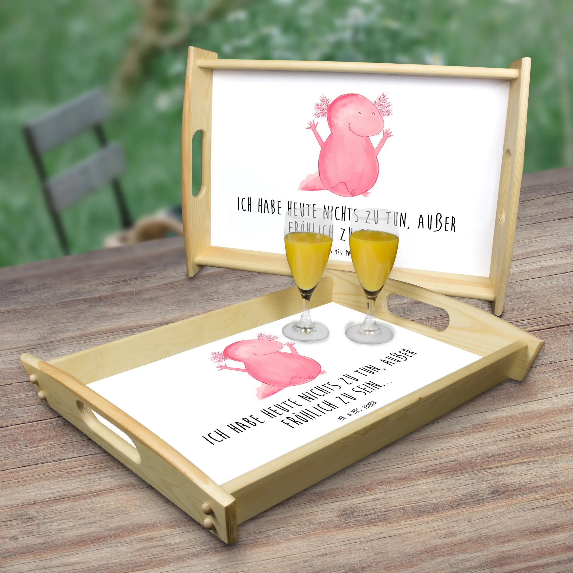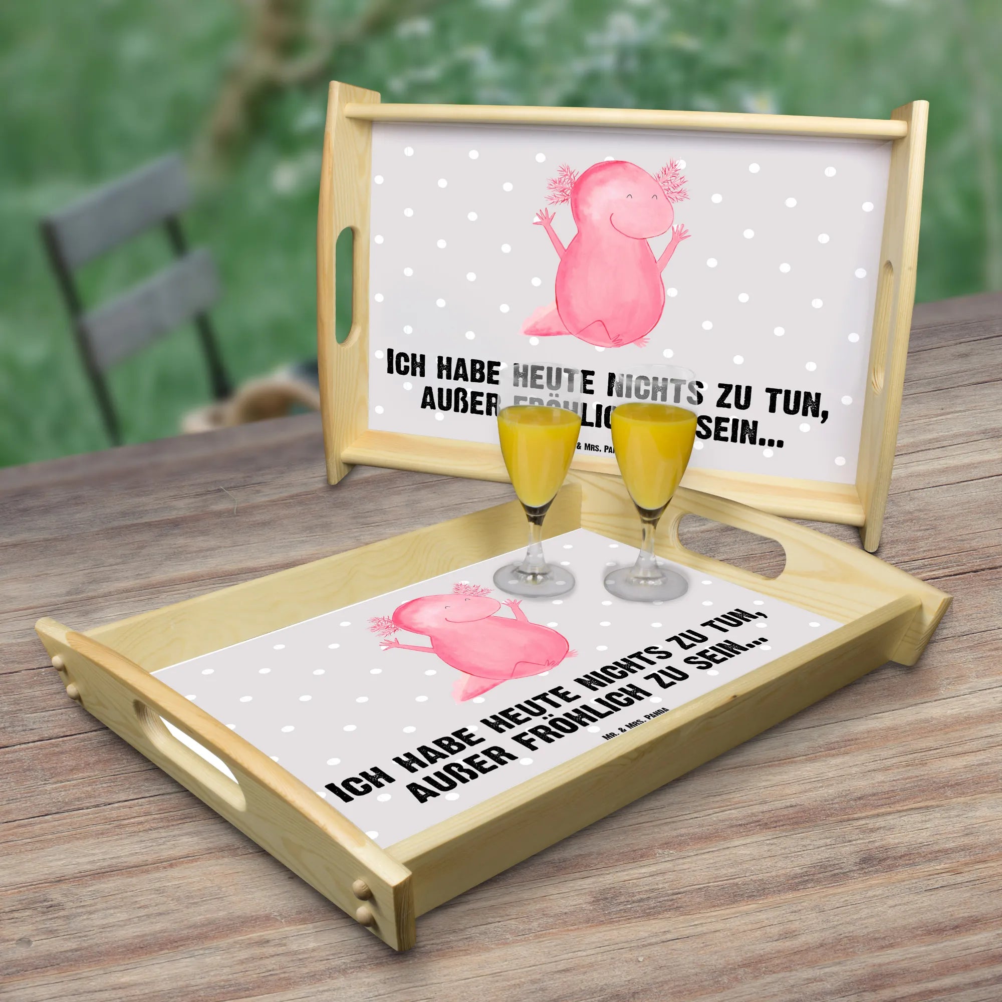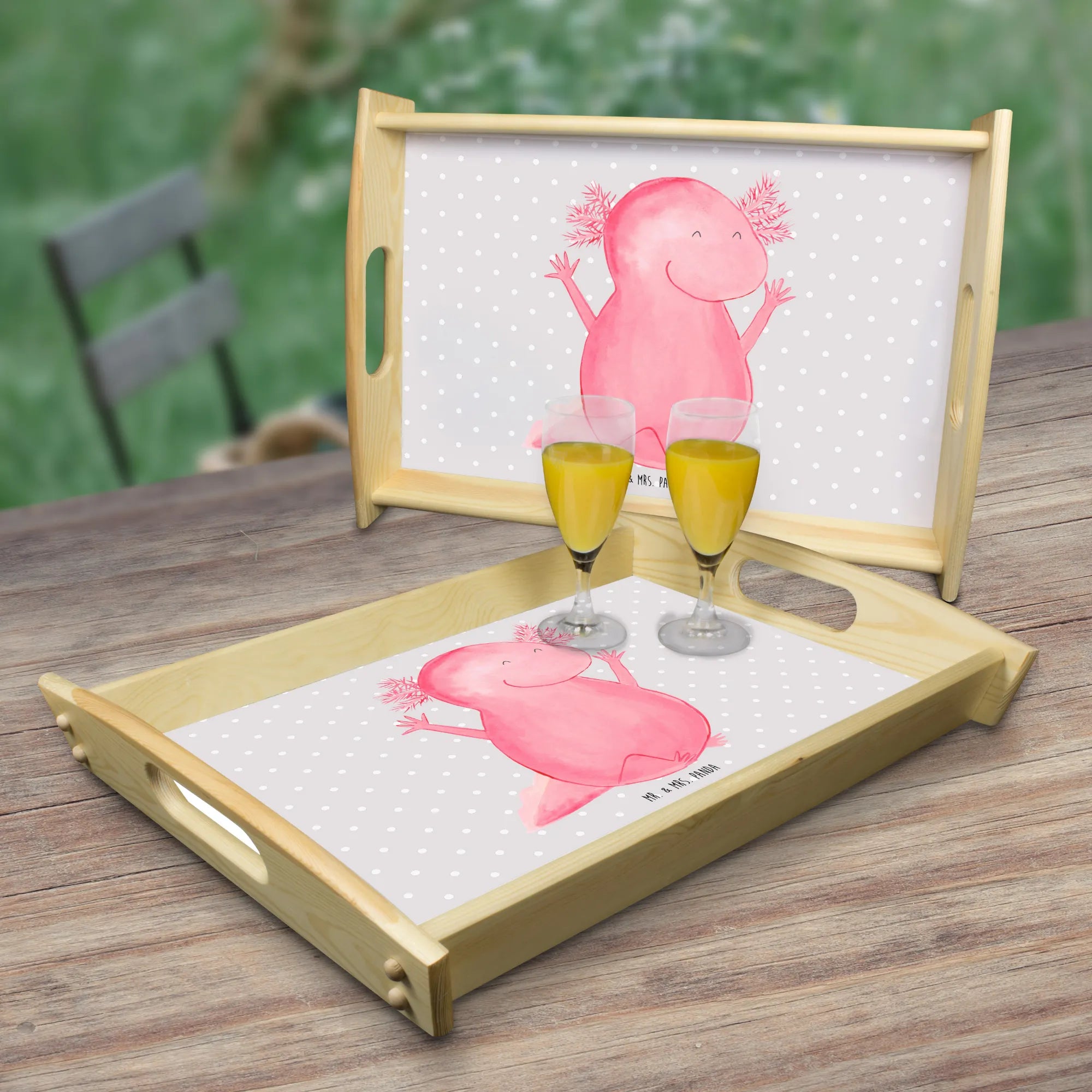 Serviertablett Axolotl Hurra - mit Spruch - Grau Pastell