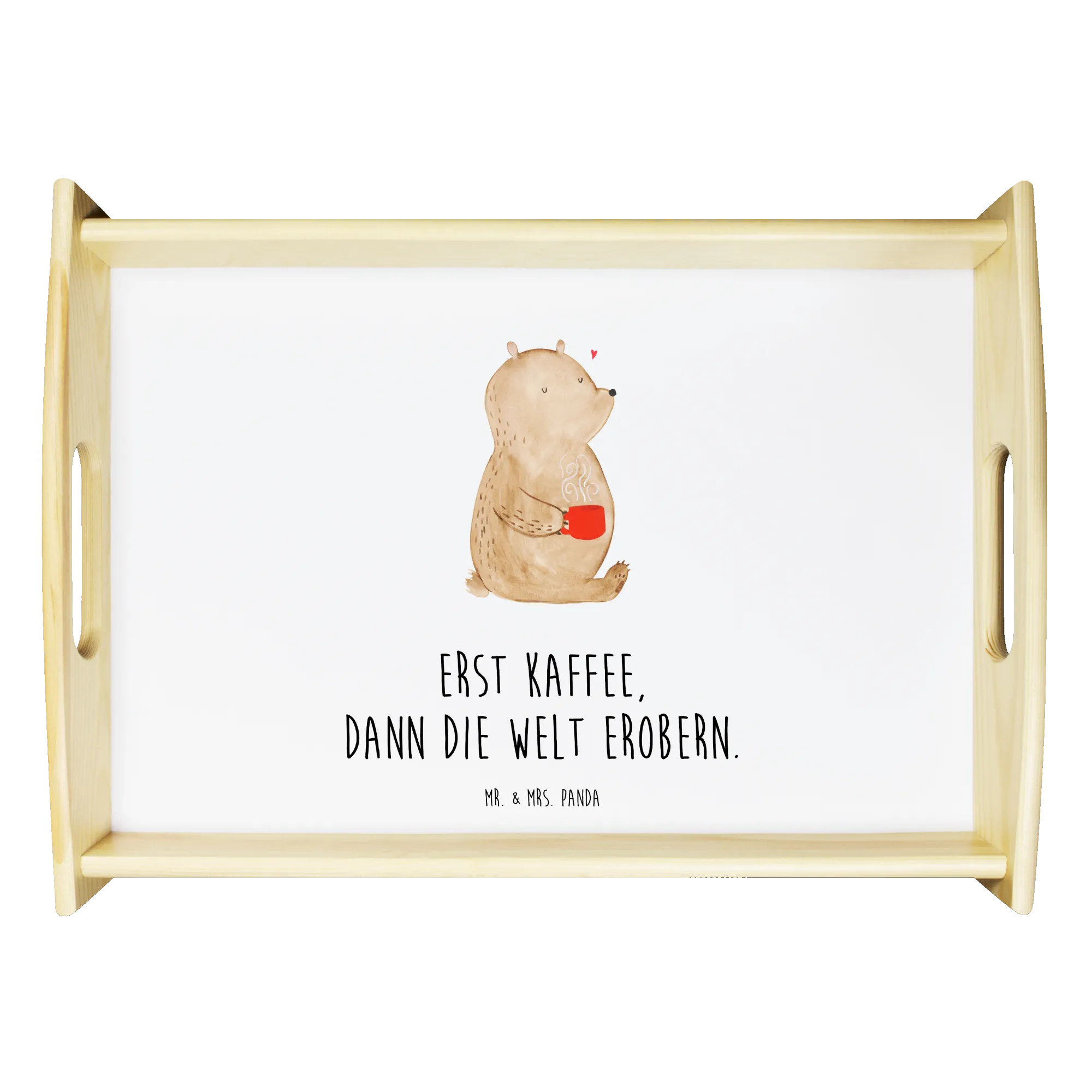 Serviertablett Bär Kaffee - mit Spruch - Weiß